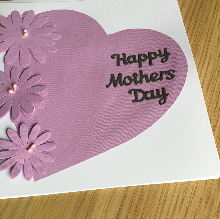 A pretty, handmade Mothers Day card with heart and handmade flowers. A simple way to let you Mum that you love her and are grateful for all she does.