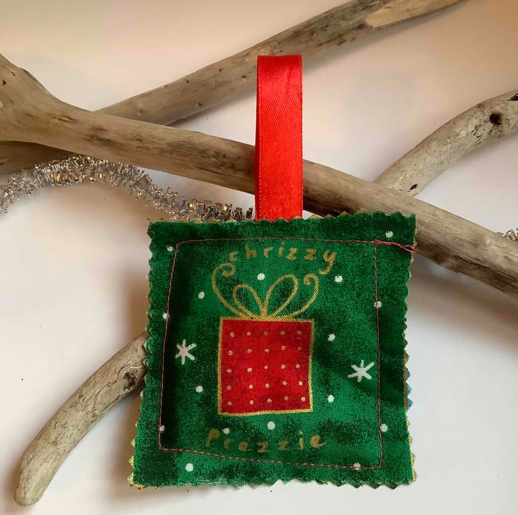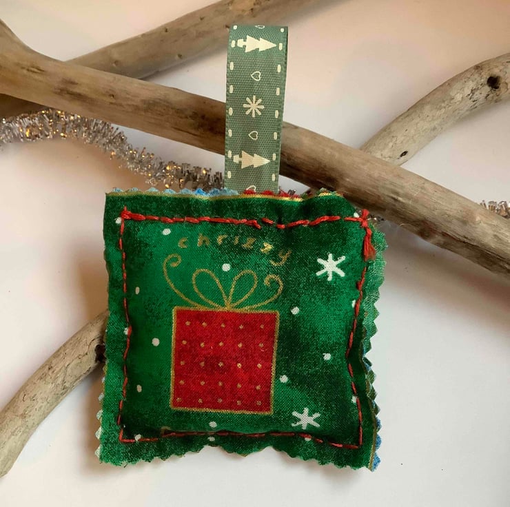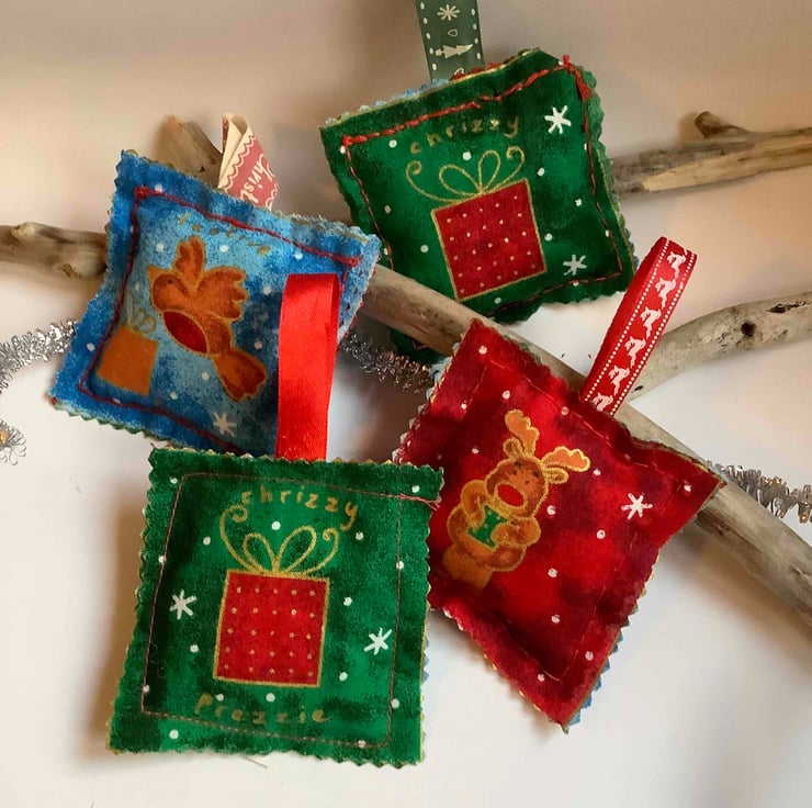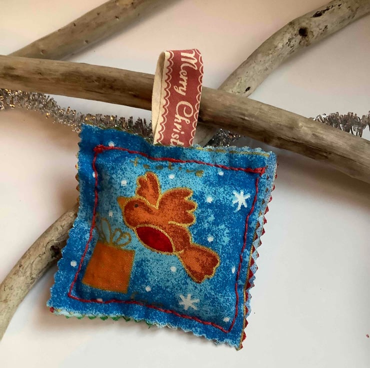 These little sachets are stitched together using cotton fabric and a Christmas ribbon to hang up