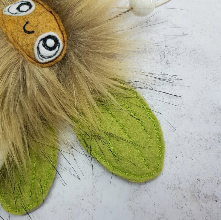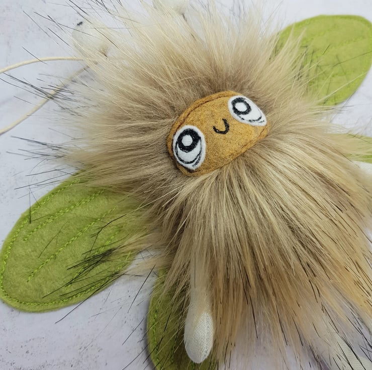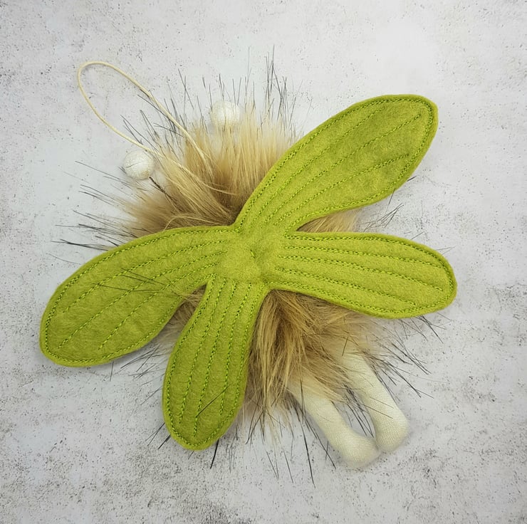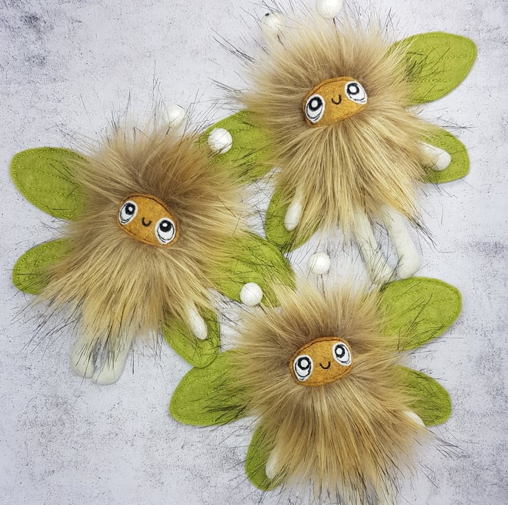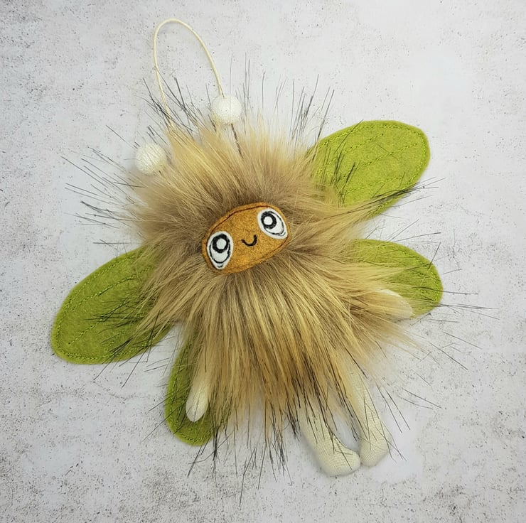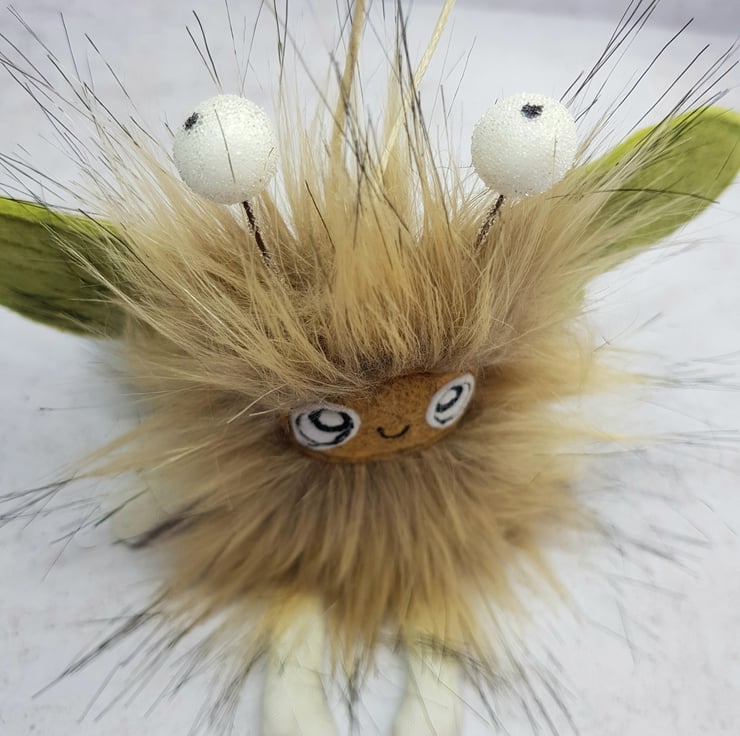 This cute little festive imp is made from the softest long faux fur with a free motion embroidered felt face. The wings are hand cut with free motion embroidered details. This imp has Mistletoe berry antennae and cotton arms and legs. A wax thread hanger is attached and the imp measures roughly 14.5cm tall and 17cm wide. Sent in recyclable packaging. This listing is for one imp only. This is made for decorative purposes only and not a toy. Due to their handmade nature each imp is slightly different and unique.