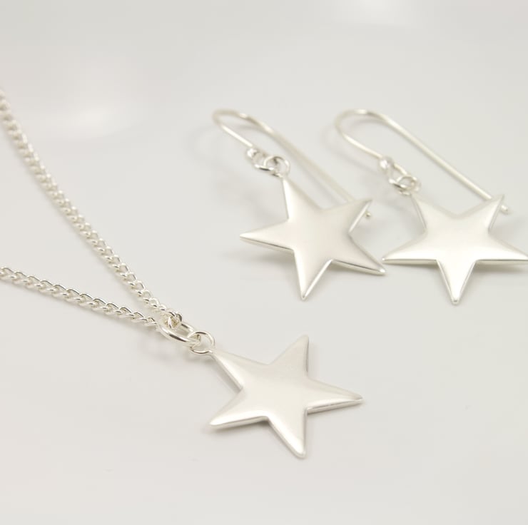 Please Note: The listing is for one pair of Silver Star Drop Earrings and does not include the Star Pendant that is shown in one of the photos. This is available to purchase separately.