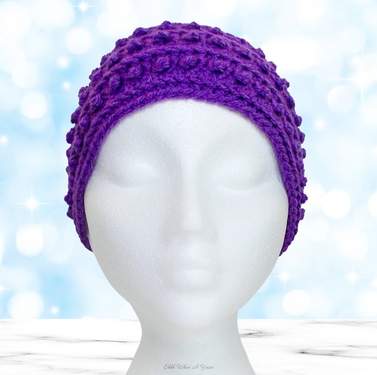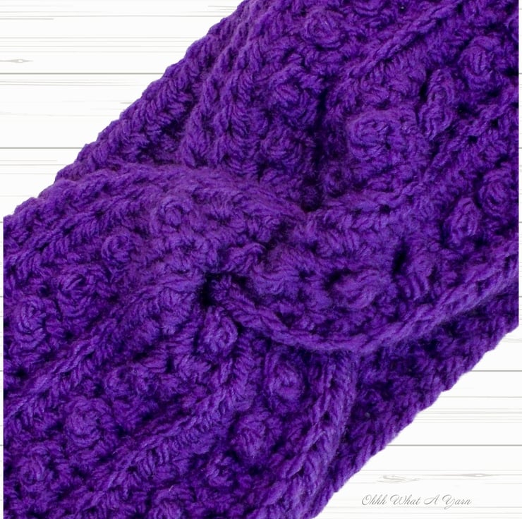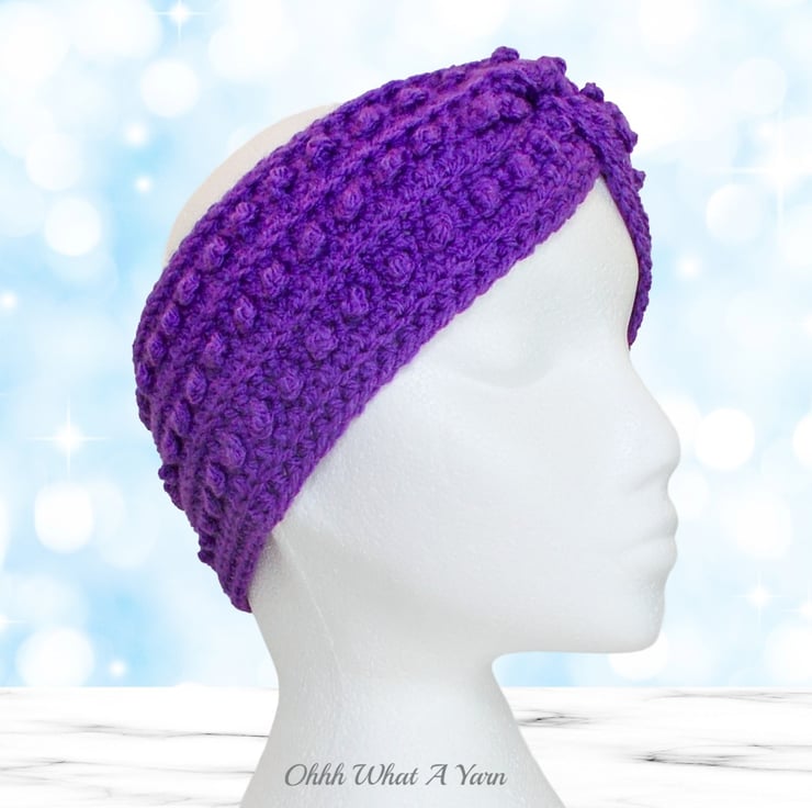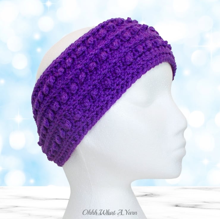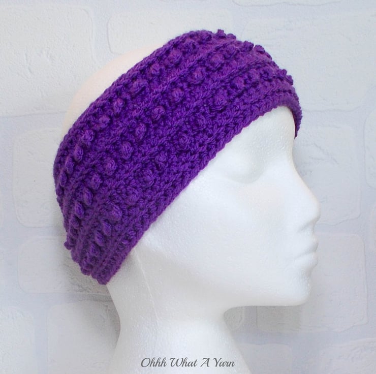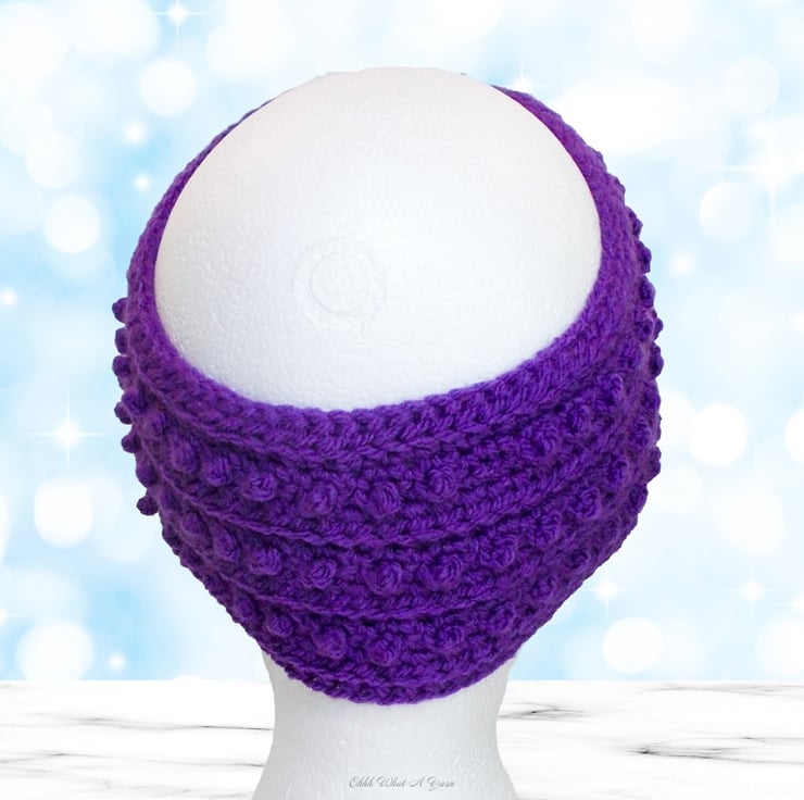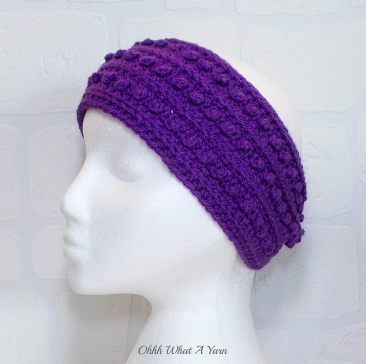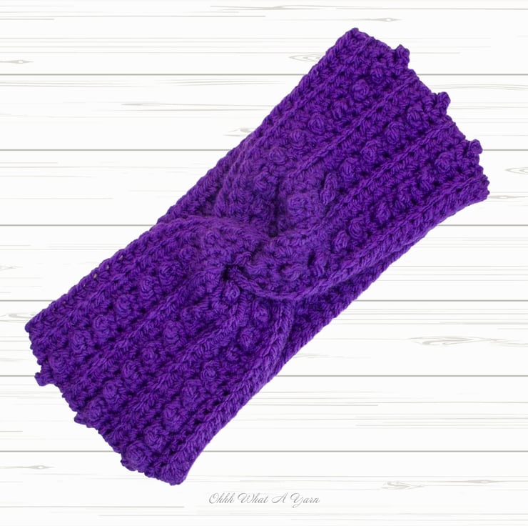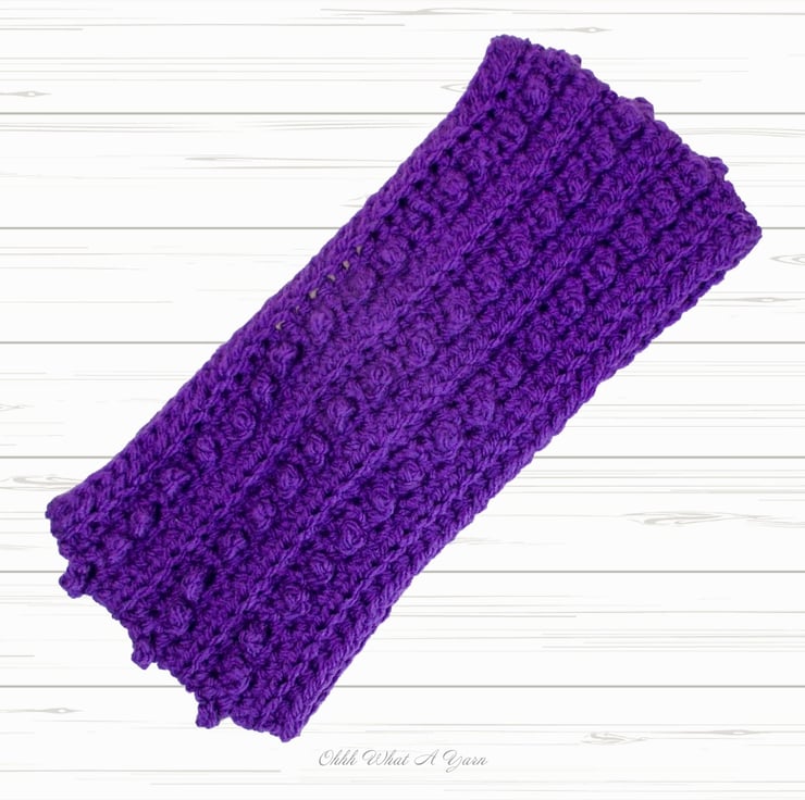This cosy purple one size ladies ear warmer/headband has been crocheted using a gorgeous 100% acrylic aran weight yarn.