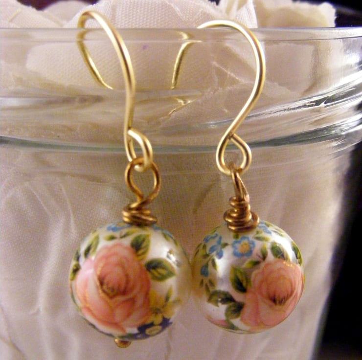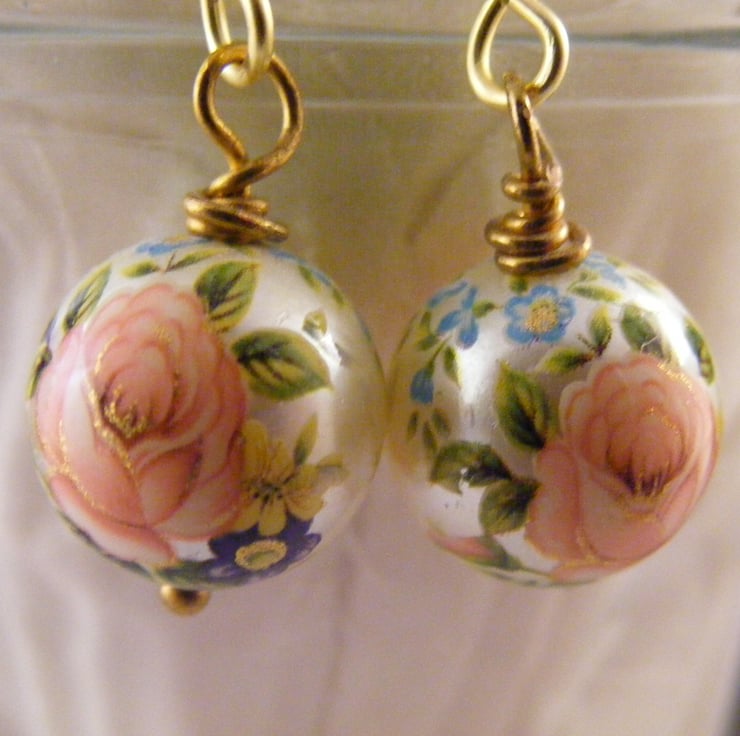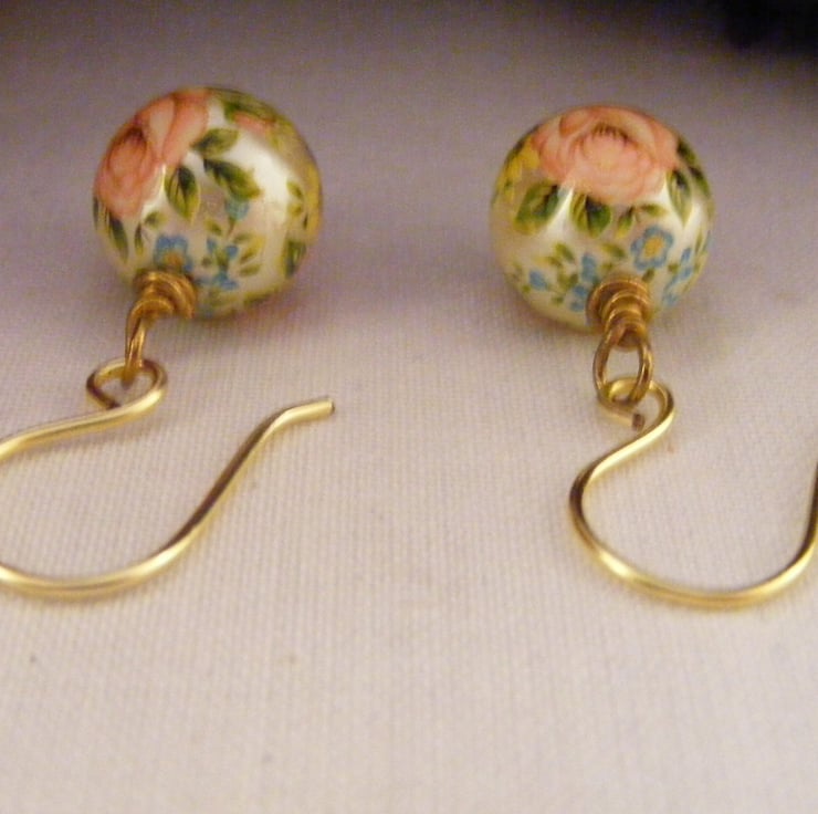 These pretty earrings are handmade with, 12 mm acrylic pink roses beads, headpins and wire for the handmade ear wires. Wire used is hypo allergenic.