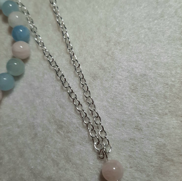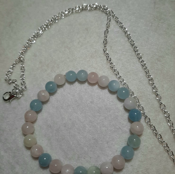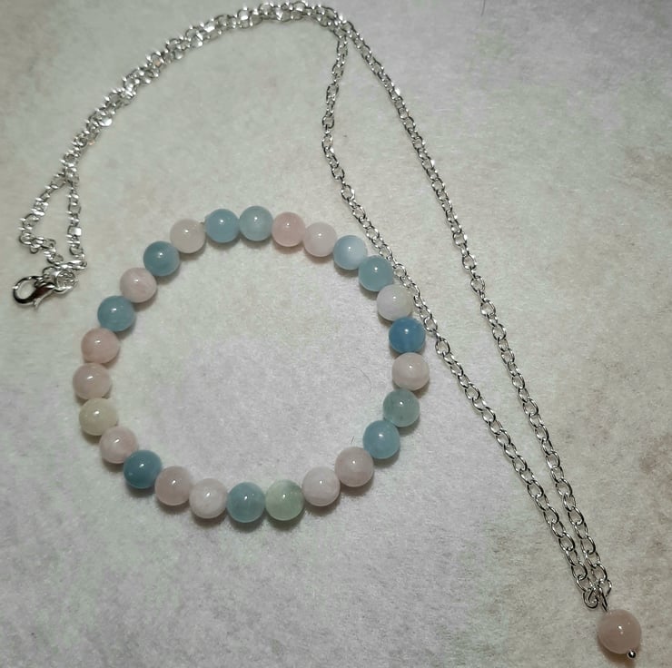 Handcrafted Morganite stretch bracelet and minamalist bead pendant set - Pink and Blue, Heart chakra jewelery, Christmas Gift Idea, Gifts for her
