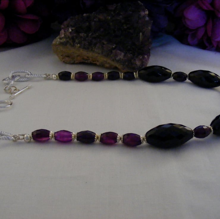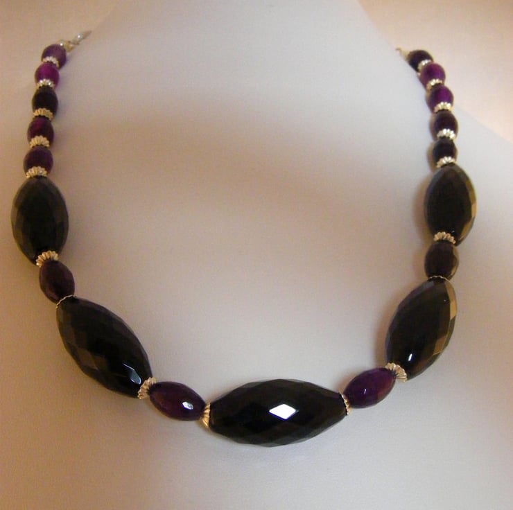 Black and Purple Agate Gemstone Necklace