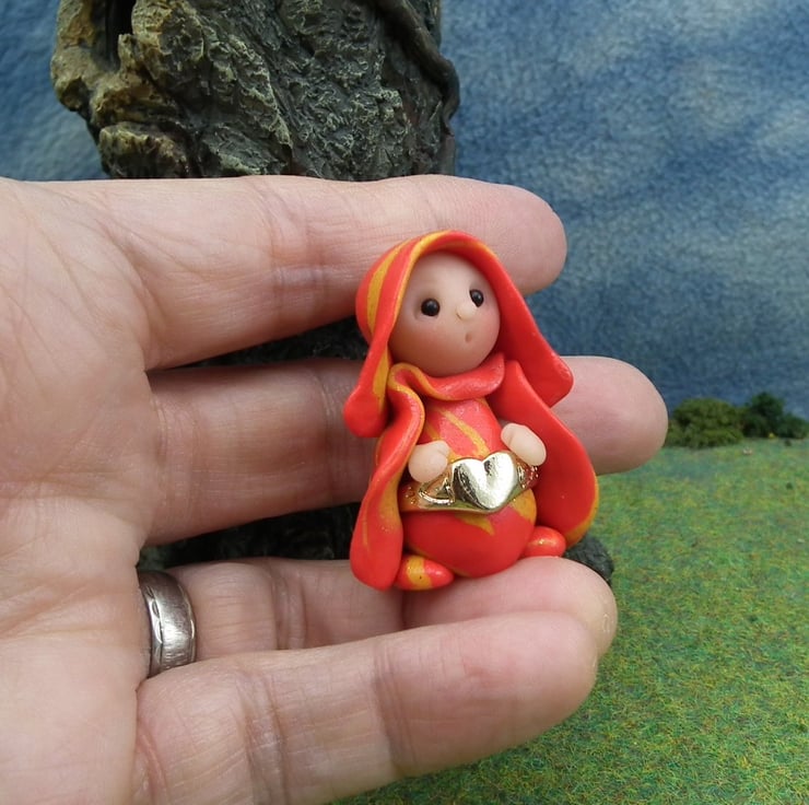 This is a 'one of a kind' creation having been entirely handmade without the use of moulds here at my studio on the Sussex Coast. Modelled with artist blend polymers, blushed before sealing with lacquer, Treso has sparkling black onyx eyes and variegated robes. Treso the Magical Gnome is just one and a half inches tall.