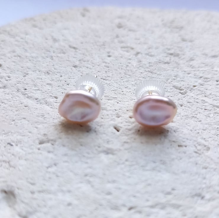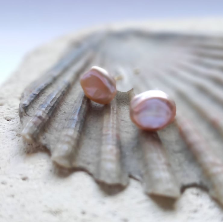 Fabulous pink-peach pearls with 9ct gold posts and plastic butterflies.