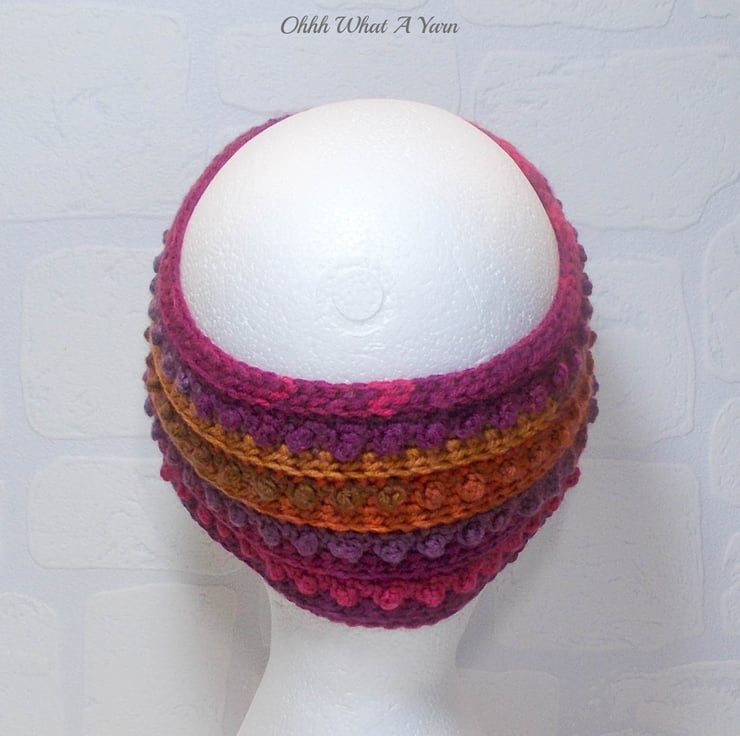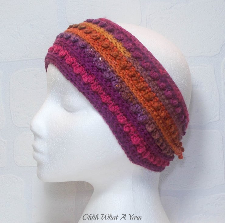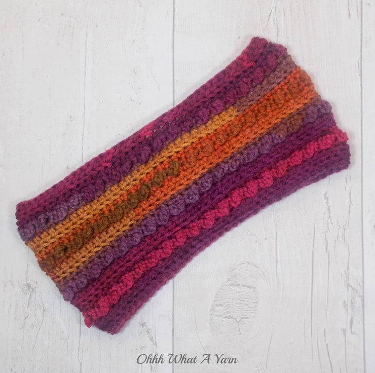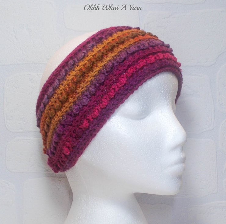 This pretty autumn colours one size ladies ear warmer/headband has been crocheted using a gorgeous 100% acrylic colour changing yarn.