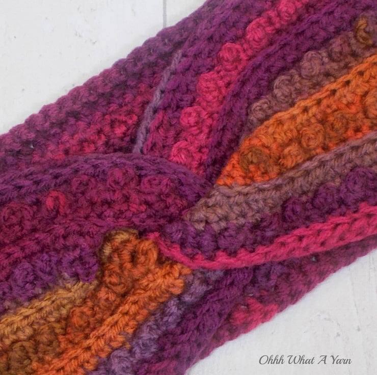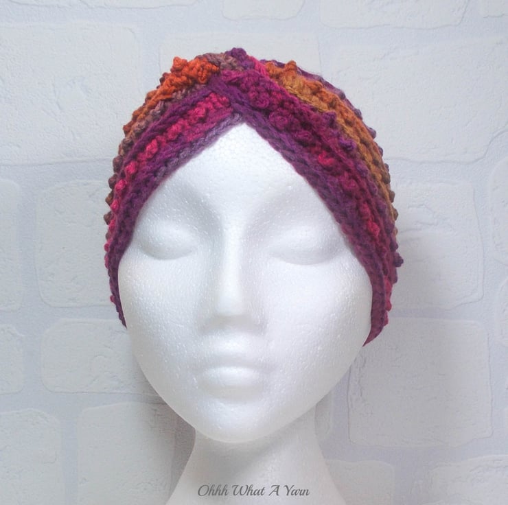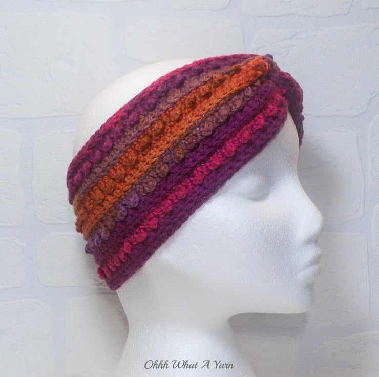 The pattern has ridges and small bobbles creating a lovely effect and it has a twist that can be worn either at the front, back or side of your head.