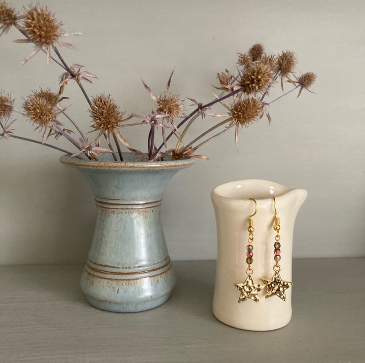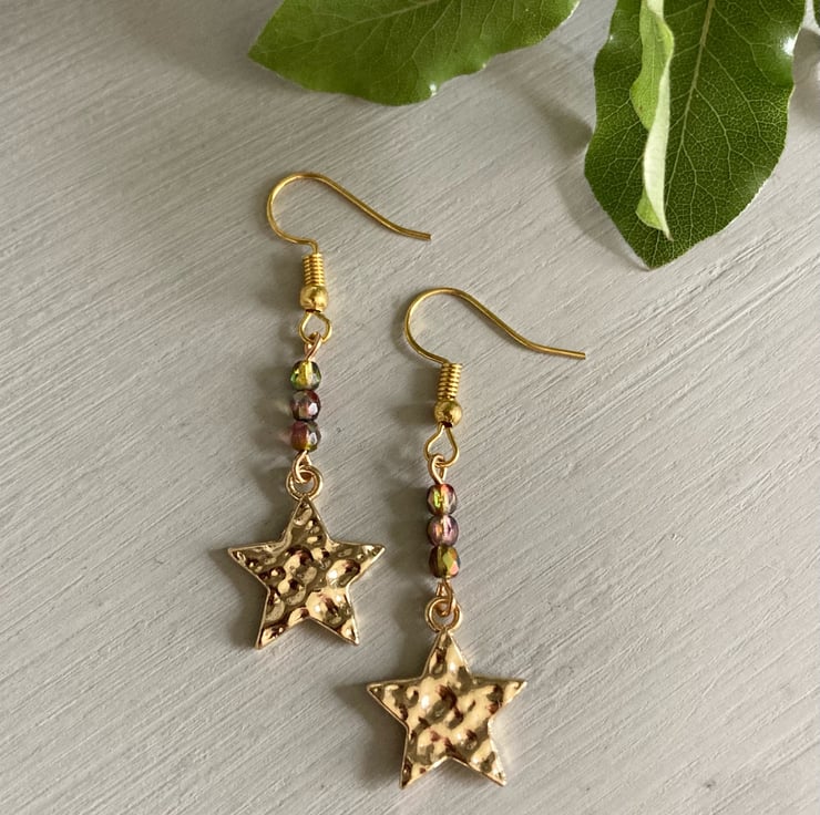 Lovely earrings made with gold-plated stars, warm-tone sparkle beads and gold-plated earring hooks. The earrings are approximately 4cm in length including the hook. Perfect for a party or special occasion!