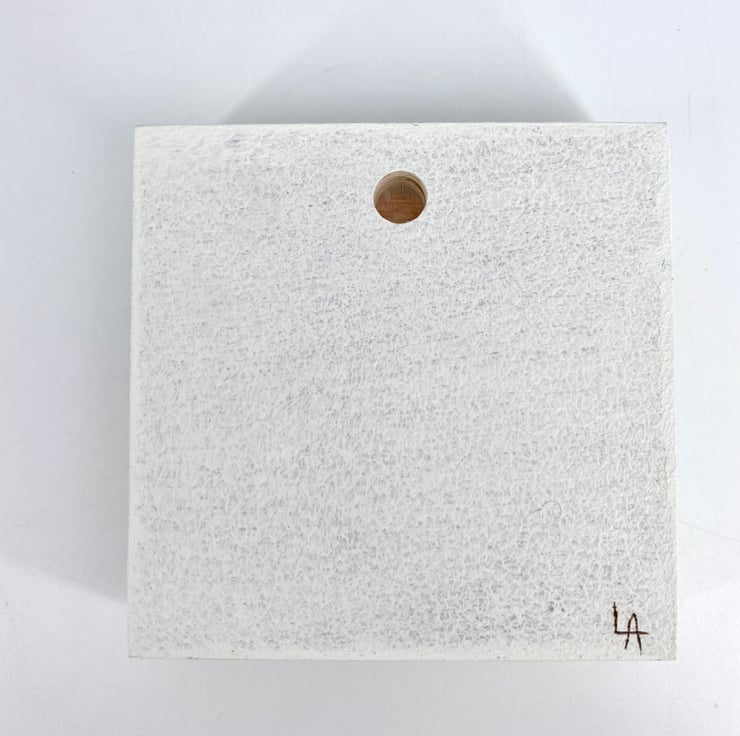 The artwork measures 7x 7cm and the wood is 10 x 10cm.