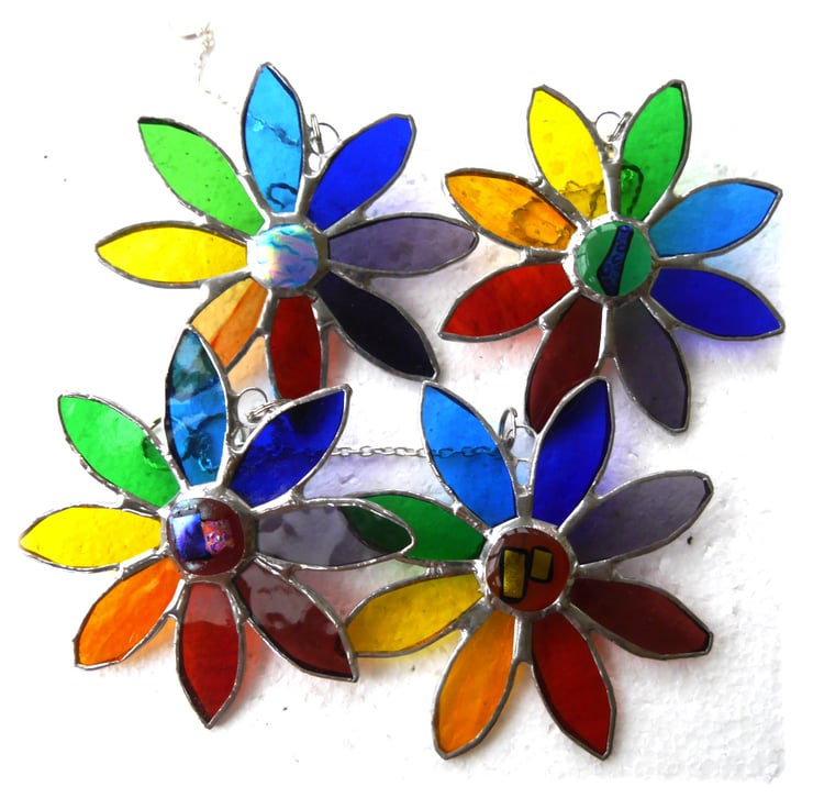 These are a stained glass suncatchers made using the Tiffany copper foil technique.
