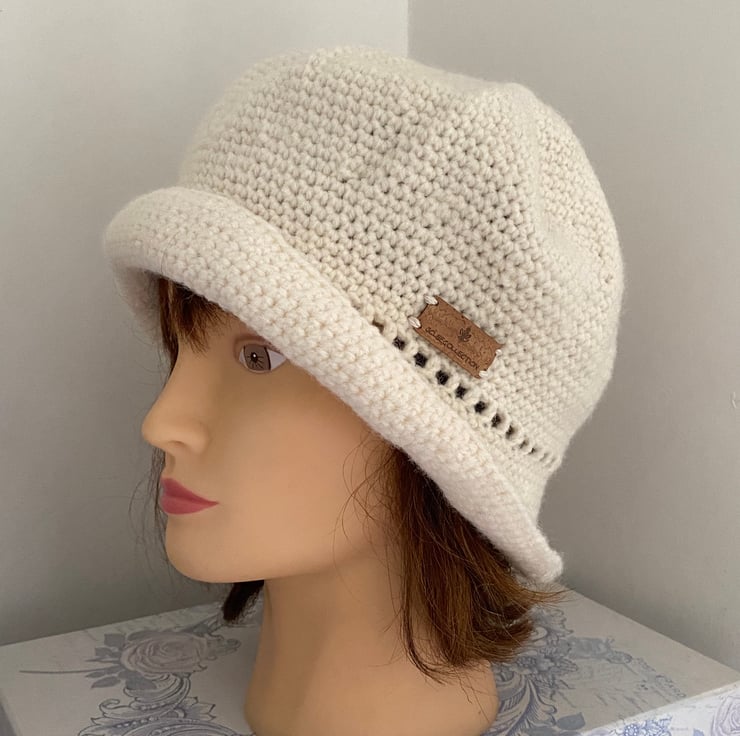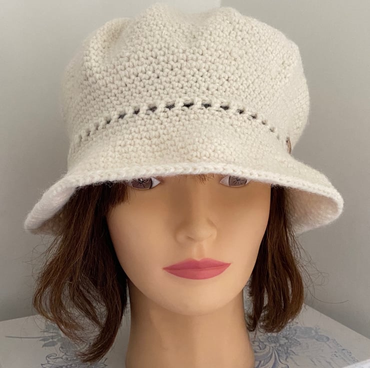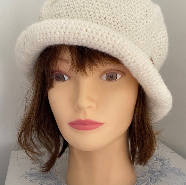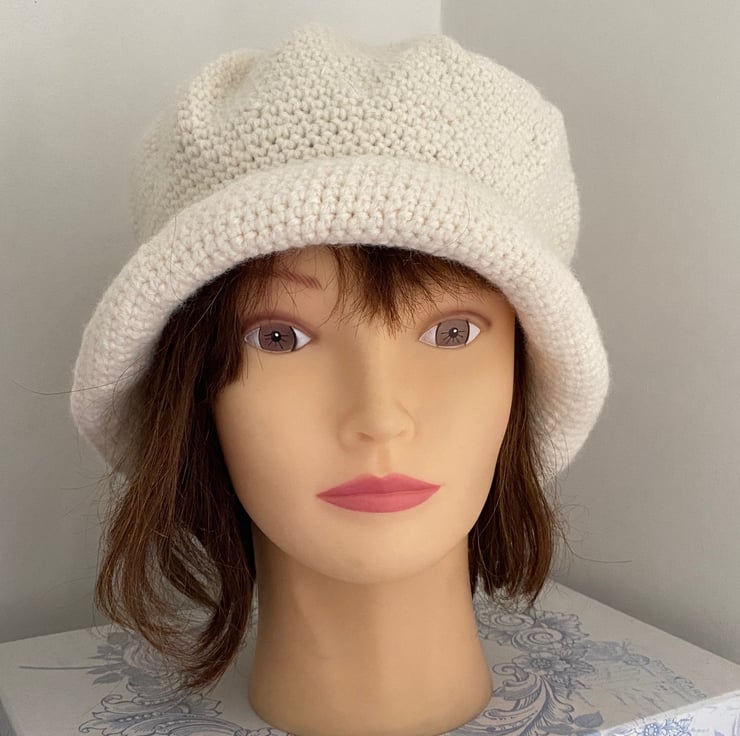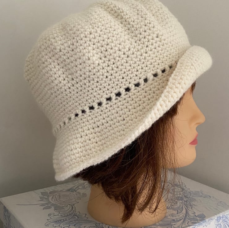 A roomy elegant vintage style hat crocheted into a 1920s-1930s bell shaped cloche.