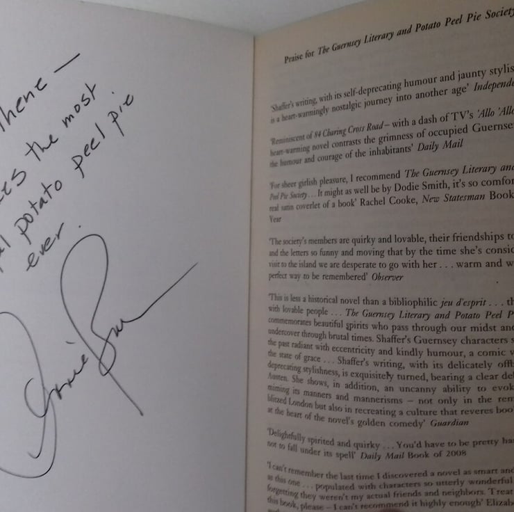 Inspired by the book "The Guernsey Literary and Potato Peel Pie Society" and originally made for the inaugural Guernsey Literary festival in 2011, Athene has designed and handmade a small collection of these each year since, making them truly limited and unique. Made with kind permission of the co-author Annie Barrows, who has one of the pieces herself.