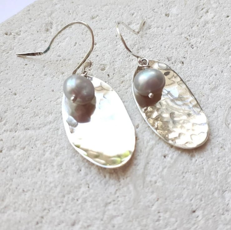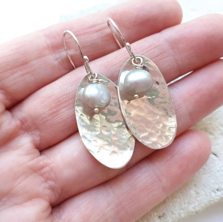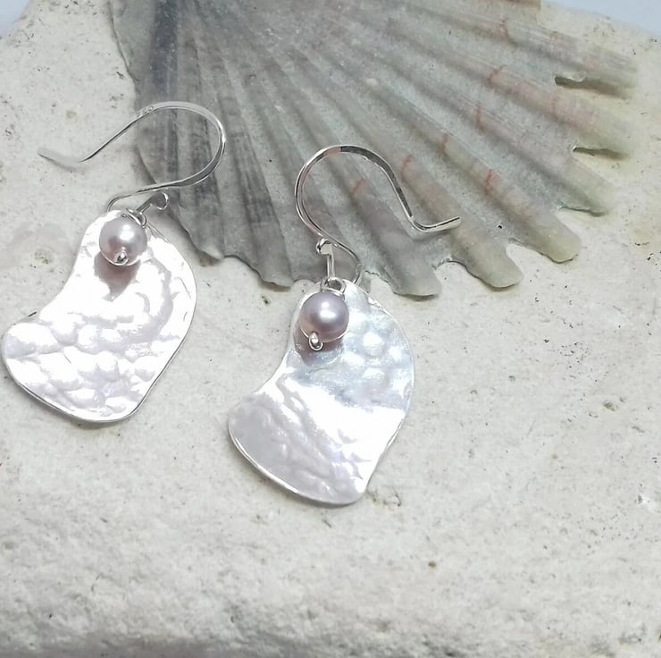 Potato Peel Earrings, individually handmade in sterling silver with cute pearl accents. All topped off with handmade sterling silver hook.