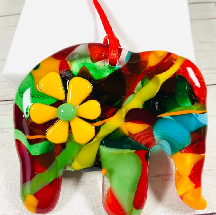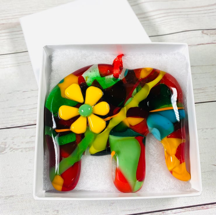 Gorgeous hand crafted cast glass elephant in a gift box. A lovely small hand crafted gift which is perfect for glass and elephant lovers alike. There are never two the same ! This elephant is named petal .