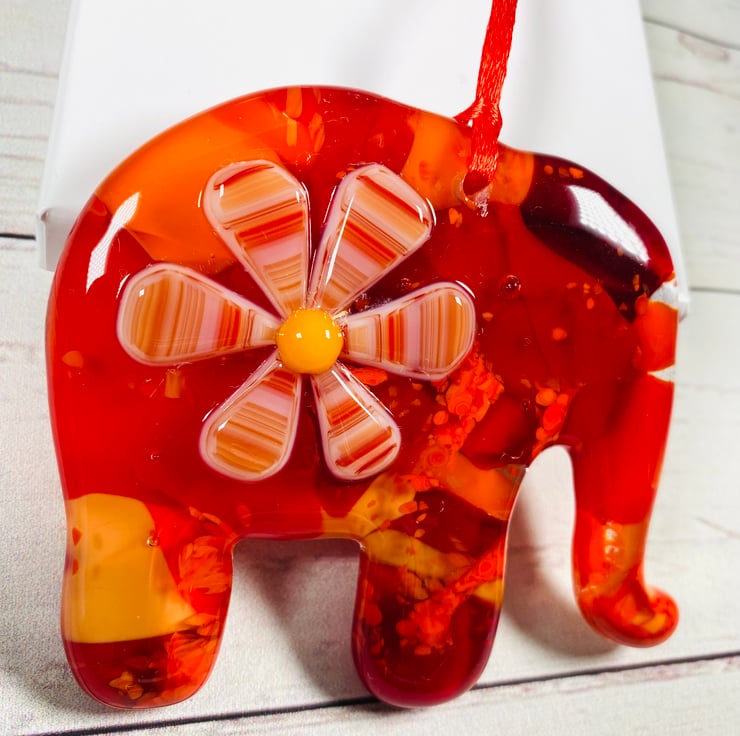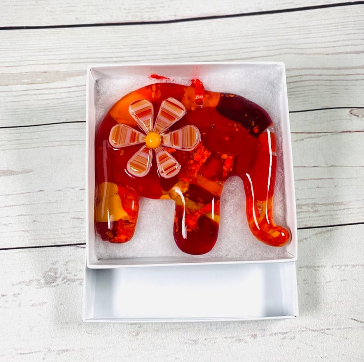 Gorgeous hand crafted cast glass elephant in a gift box. A lovely small hand crafted gift which is perfect for glass and elephant lovers alike. There are never two the same ! Approximately 4 inch diameter