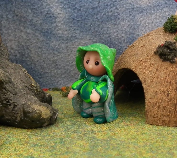 This is a 'one of a kind' creation having been entirely handmade without the use of moulds here at my studio on the Sussex Coast. Modelled with artist blend polymers, blushed before sealing with lacquer, Hamie has sparkling black onyx eyes and striped trousers. Hamie the Trousered Gnome is just one and a half inches tall.