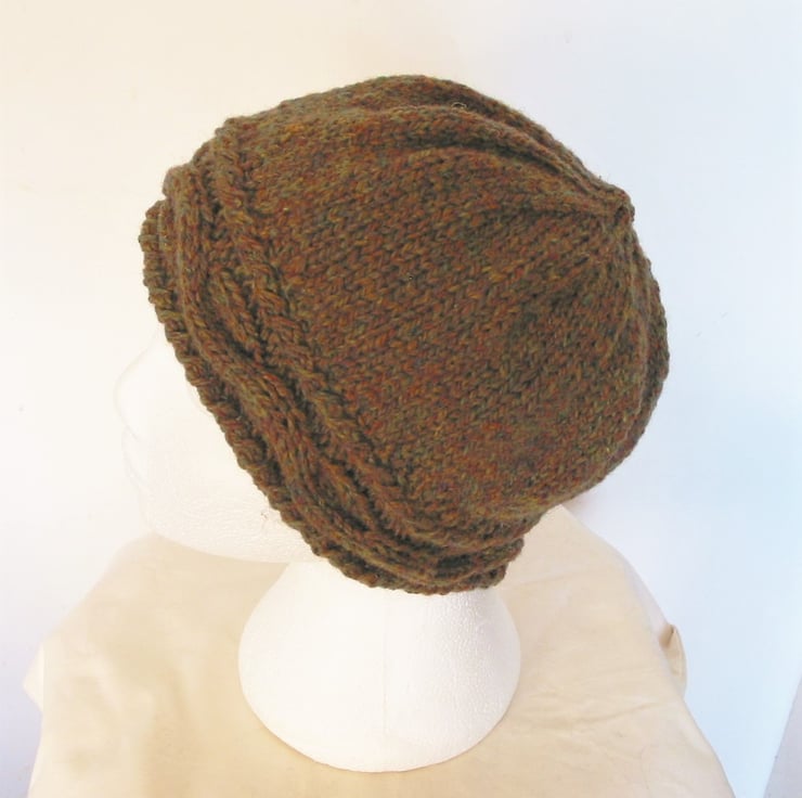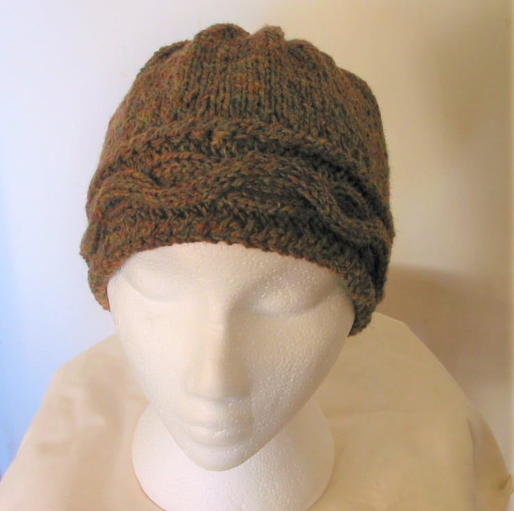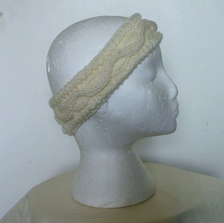 Pattern for knitted headband and hat in Aran weight yarn. To fit average size adult head (up to 24 ins (61 cm). 100gms.5mm needles.