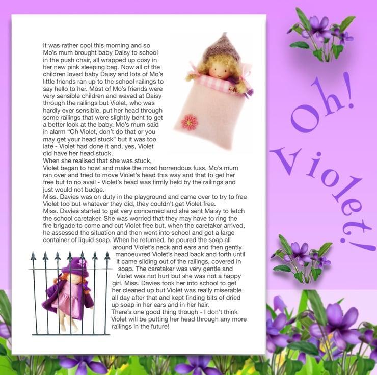 There are other children in Maisy’s class at school - Violet, Billy with his pet rabbit, Amber, Tilly, Rosie and her kittens, Amelia, Ruby, Marigold, Bobby with Max the dog, and the twins Oliver and Olivia, who have a puppy called Oscar. The dolls are all 26cm tall and baby Daisy is 16cm. Maisy and Mo love nothing more than having adventures with their friends. You can read about their adventures on my Facebook and Instagram pages - Maisy Muffin Rag Dolls and on my Mulberry Green Pinterest boards.