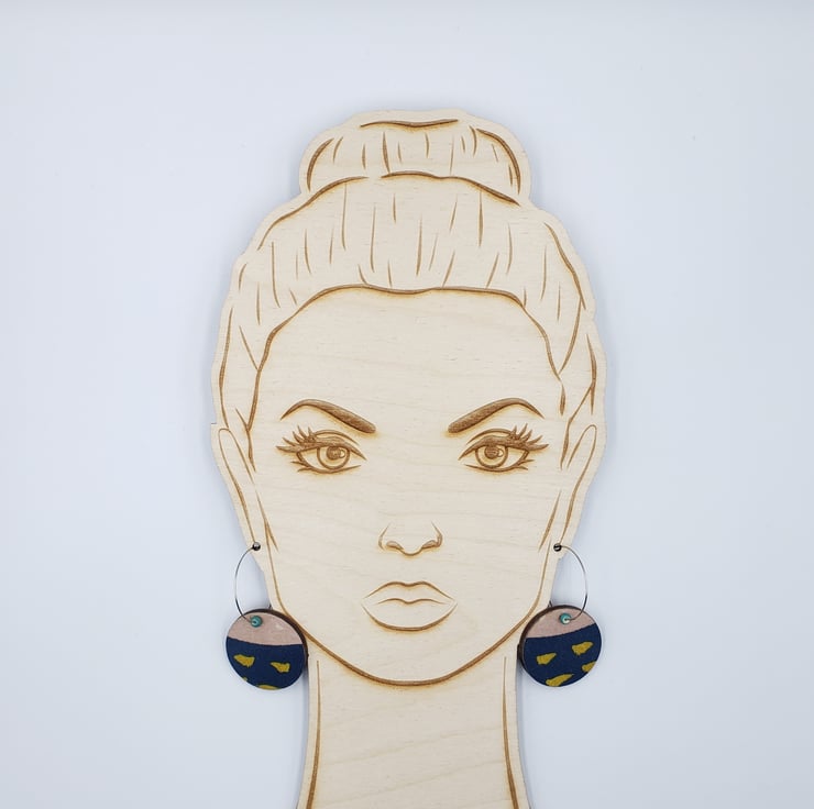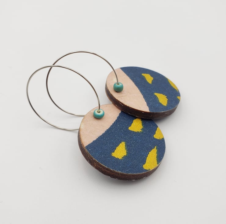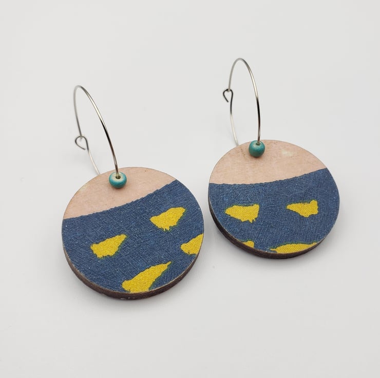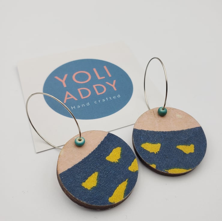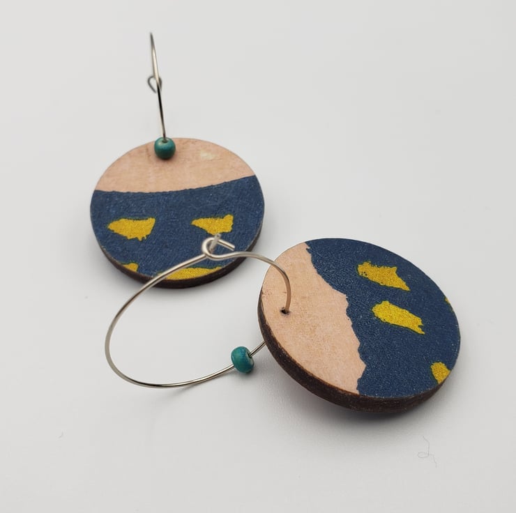 Your earrings will be posted in parts ready for you to easily assemble at home (simple instructions will be included). You will receive the earring hoops, the wooden patterned disc, plus any beads (if included in the design). Why?…..……..two reasons, to keep postage costs down for my customers as I can use letterbox friendly packaging, plus most of my earrings can be worn either way around, meaning you have two pairs of earrings for the price of one! Please note, some earrings are very different on either side, others have very subtle differences. Please see the images.