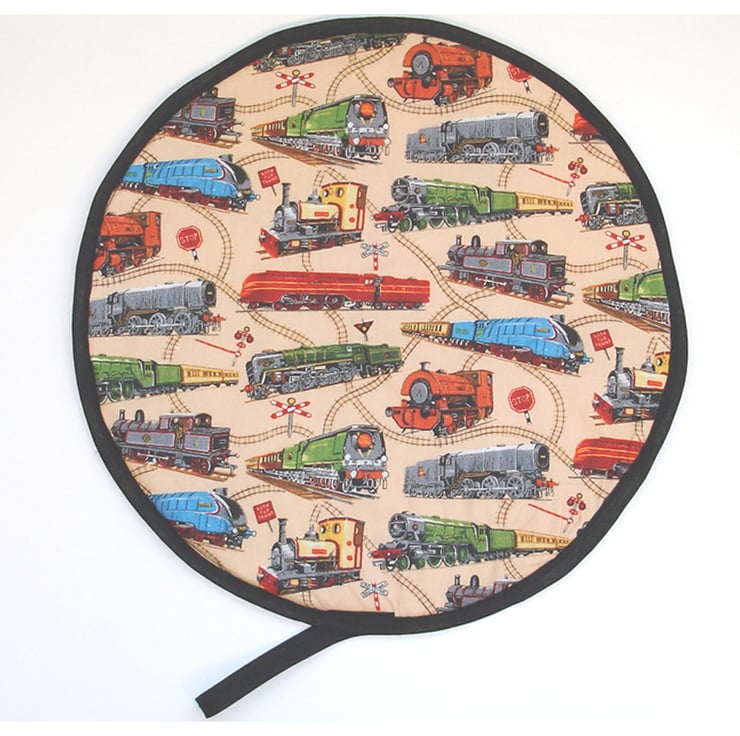 Each mat has three layers - Facing cotton fabric, a layer of padding and a layer of towelling - Making it also suitable for mopping up and pot-grabbing!