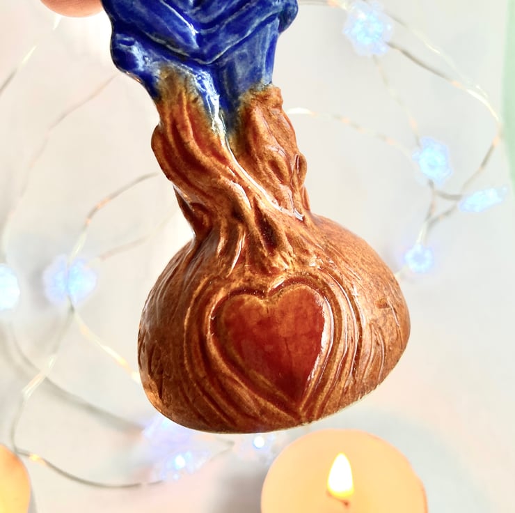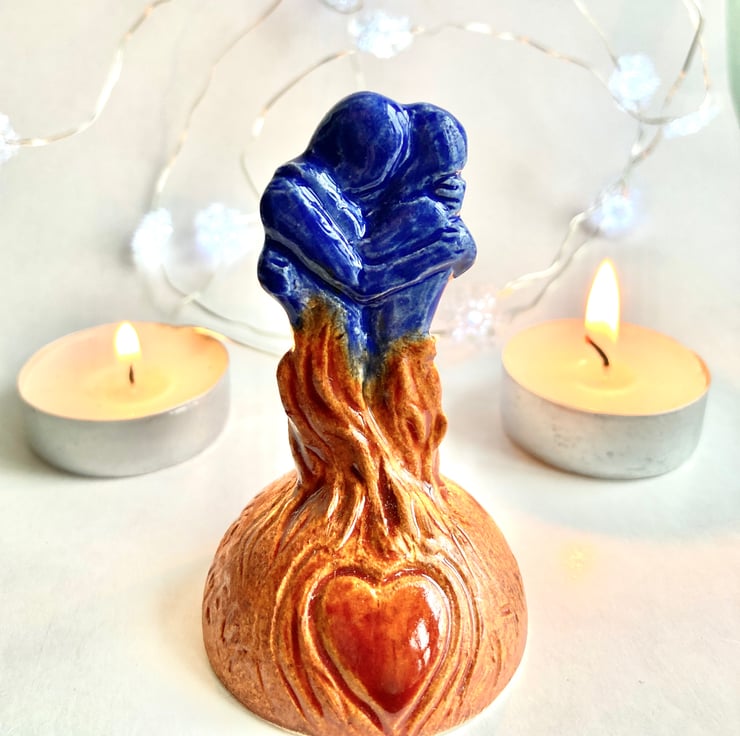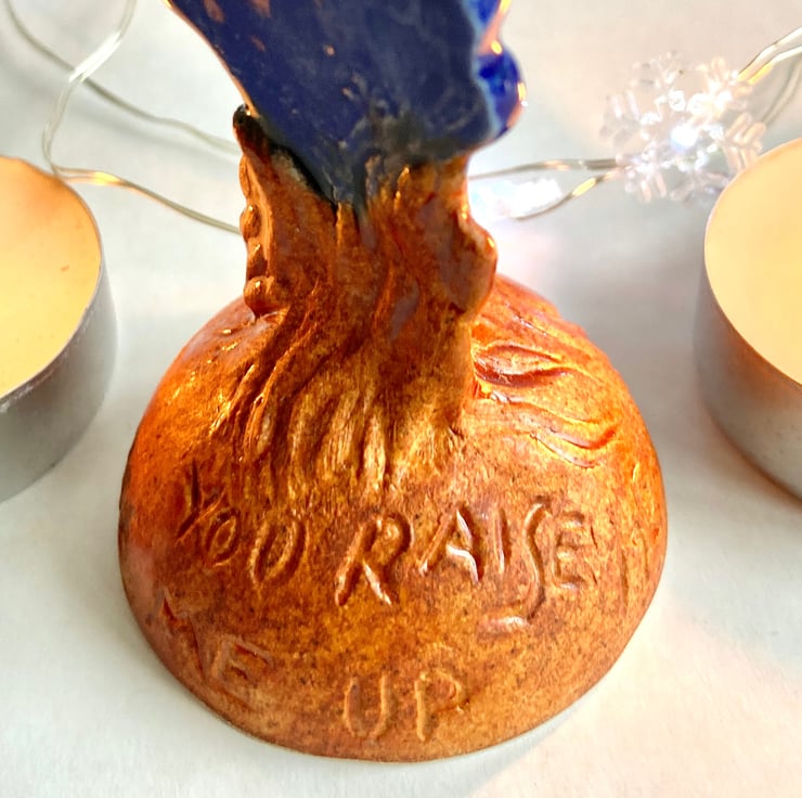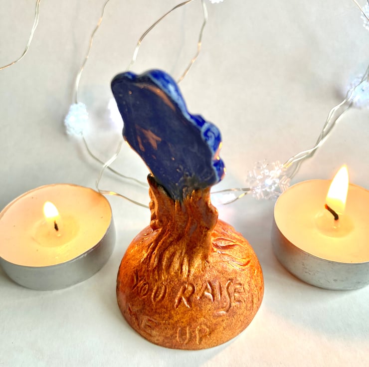 SPECIAL EDITION handmade candle snuffer ornament created in gender-neutral figures with heart & inscription “You raise me up” written twice on the base.