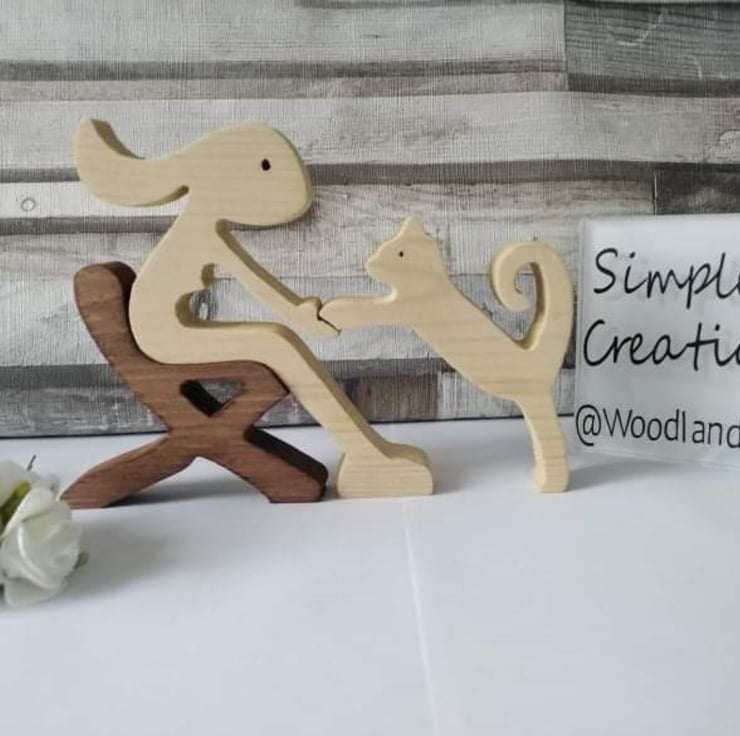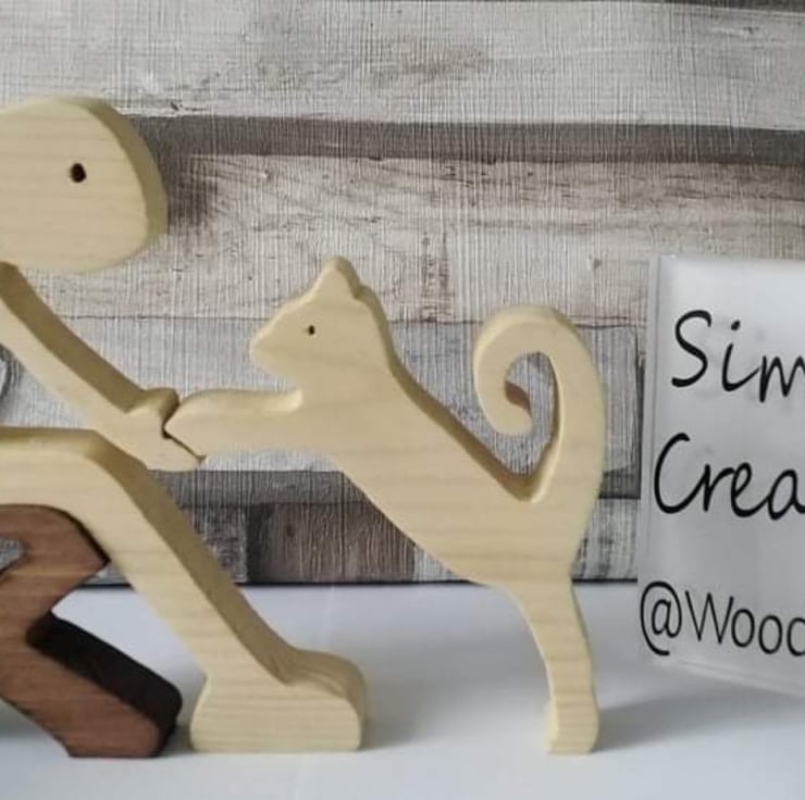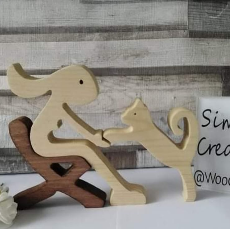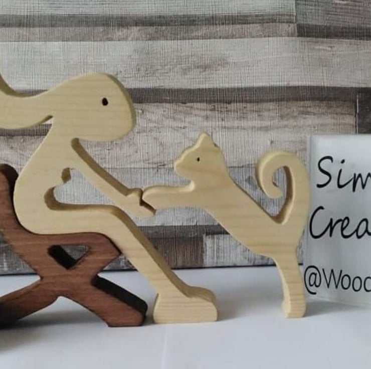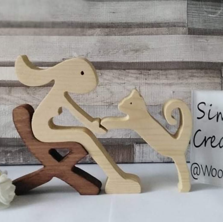 These wooden handmade cut figures and pets are our new collection