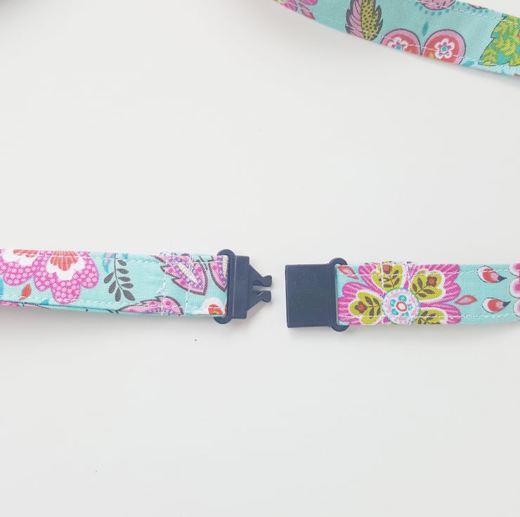 Comfortable and stylish; this cotton fabric lanyard is perfect for your ID card or whistle.