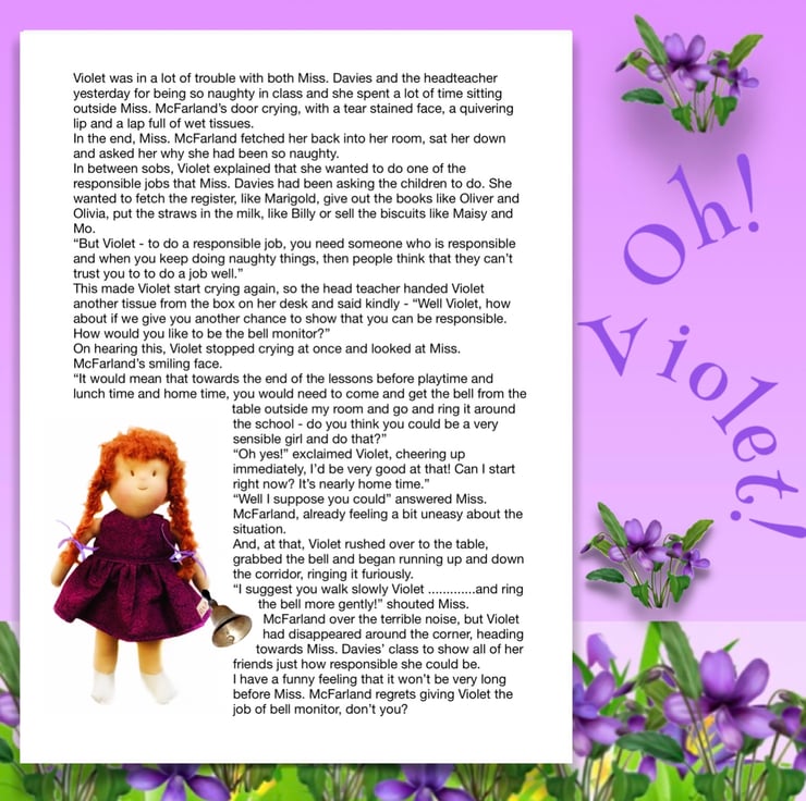 There are other children in Maisy’s class at school - Violet, Billy with his pet rabbit, Amber, Tilly, Rosie and her kittens, Amelia, Ruby, Marigold, Bobby with Max the dog, and the twins Oliver and Olivia, who have a puppy called Oscar. The dolls are all 26cm tall and baby Daisy is 16cm. Maisy and Mo love nothing more than having adventures with their friends. You can read about their adventures on my Facebook and Instagram pages - Maisy Muffin Rag Dolls and on my Mulberry Green Pinterest boards.