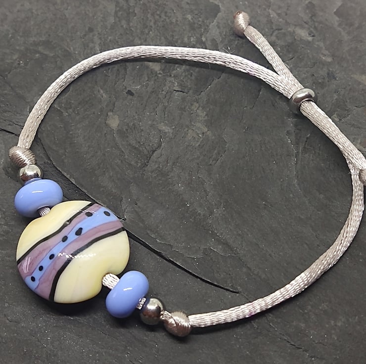 The bracelet has been strung on silver satin cord and can be adjusted with the slider bead to sit comfortably to your wrist size. Maximum length is approximately 8 inches (20 cm).