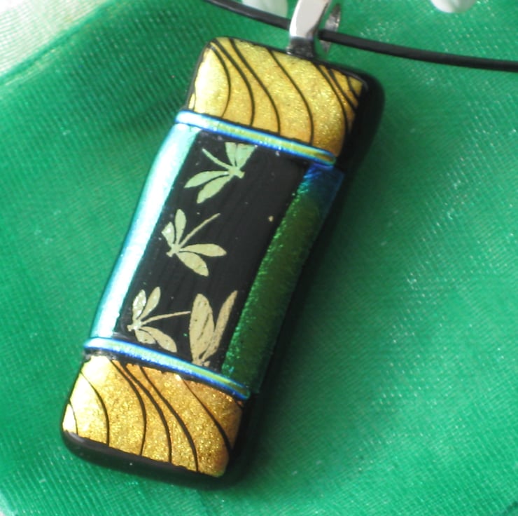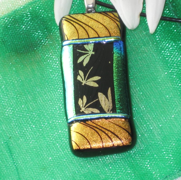 A unique fused dichroic glass pendant.