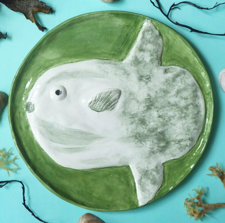 Ocean Sunfish Ceramic Plate - Hand Sculpted - by Jacqueline Talbot Designs