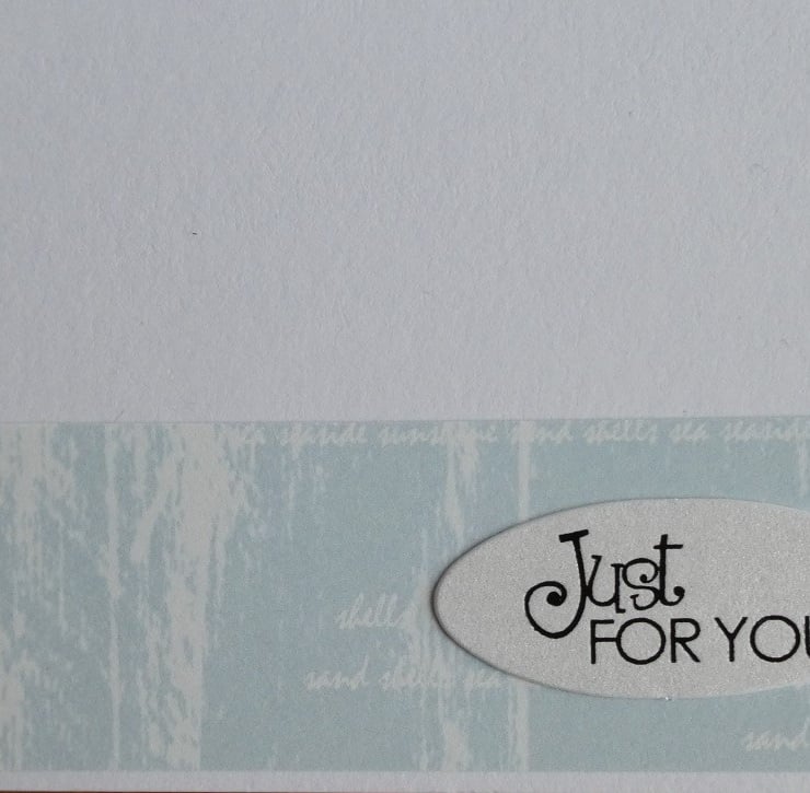 A small piece of matching paper has been used across the bottom edge of the inside of the card with an oval message saying 'just for you'. There is plenty of space left for your own message.