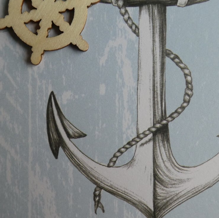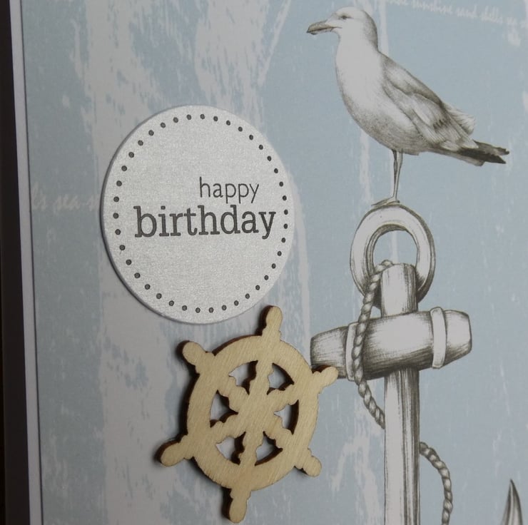 It has been finished with a circular 'happy birthday' message and a wooden ships wheel embellishment.
