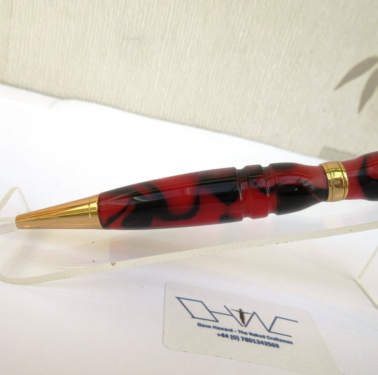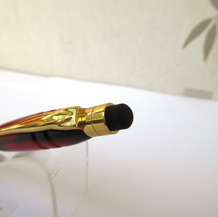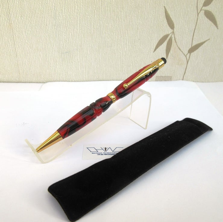 For sale here is a beautiful hand crafted Ballpoint Roller Ball Stylus Pen personally turned by myself from a rich, shimmering, red and black colour acrylic.