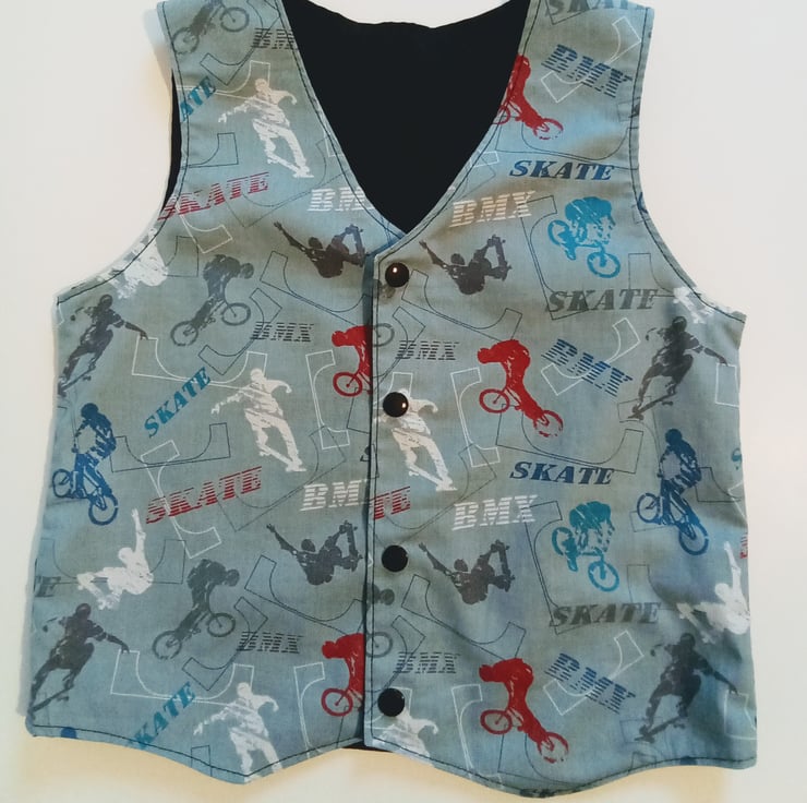 Waistcoat, Age 4yrs, reversible, boys waistcoat, skateboard, BMX, bikes