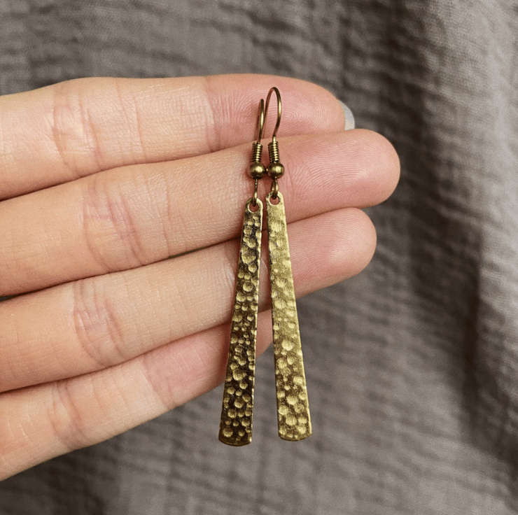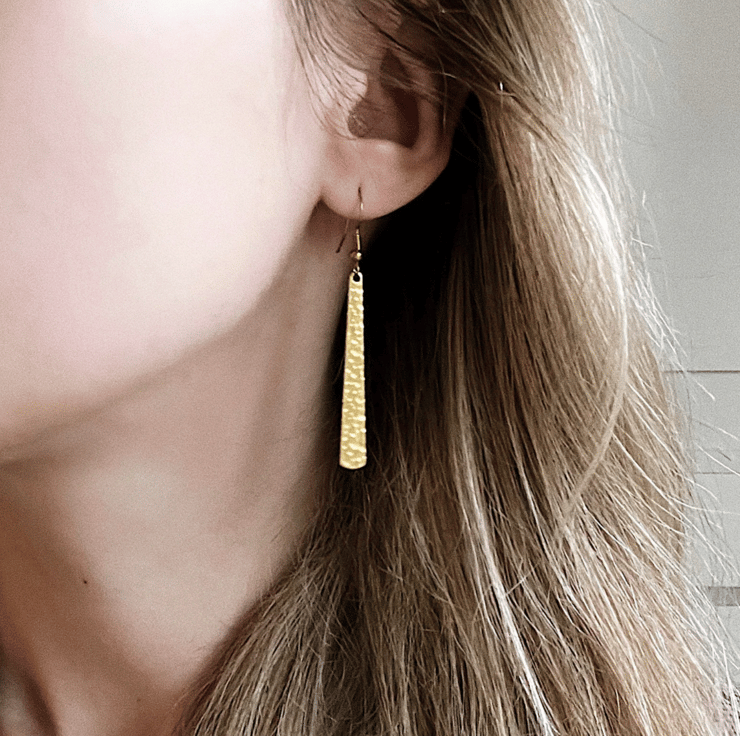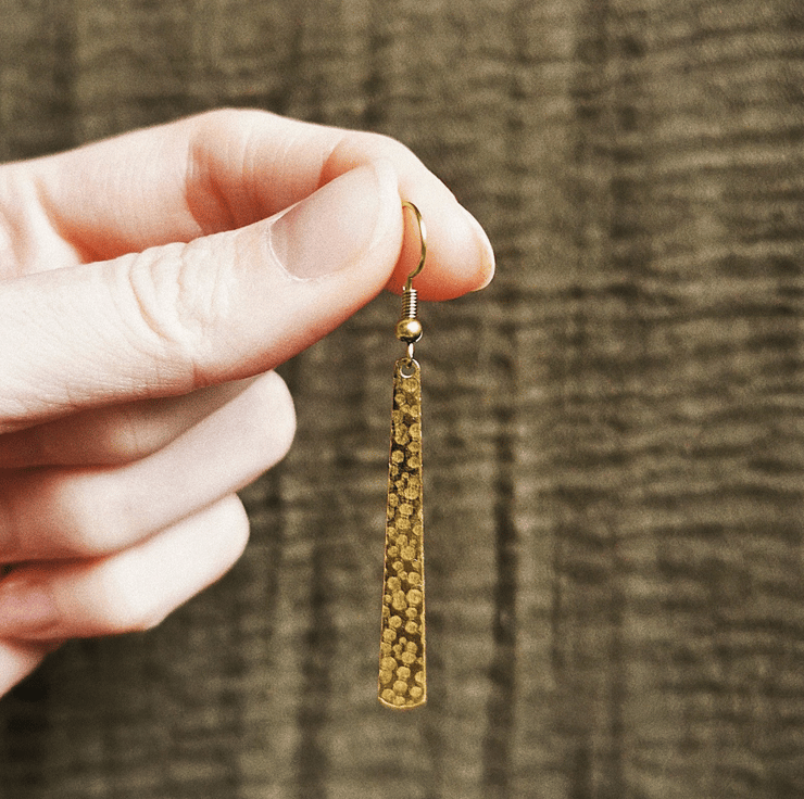 These minimal long earrings are made from raw nickel & cadmium free brass.