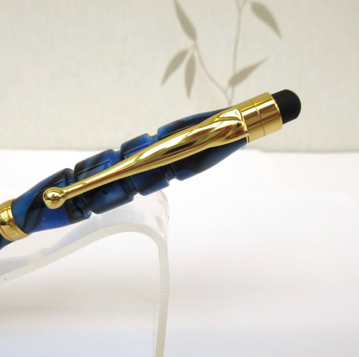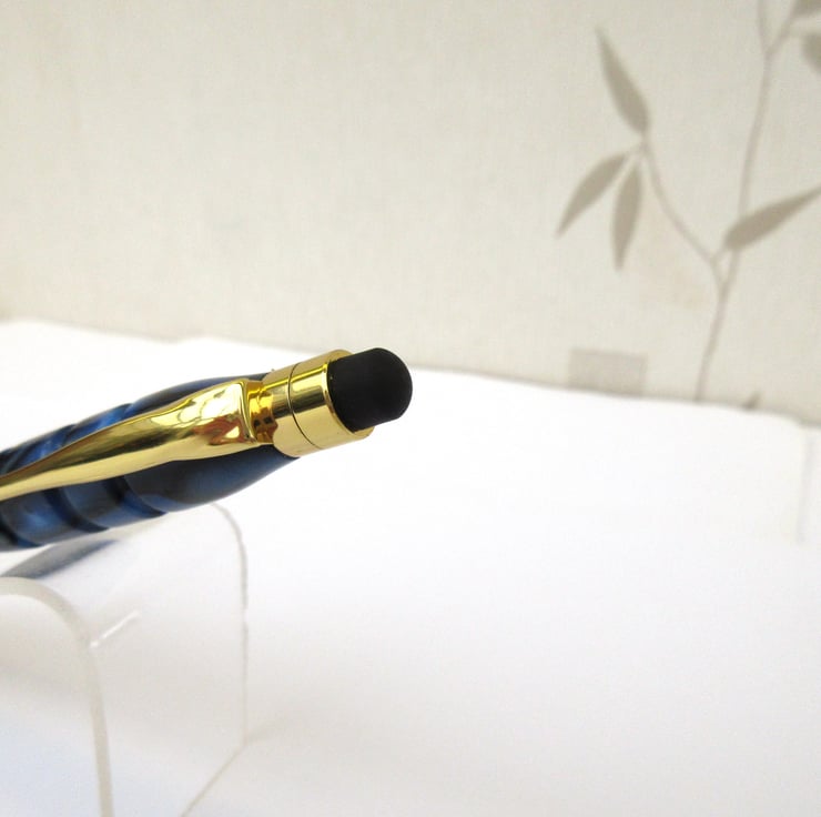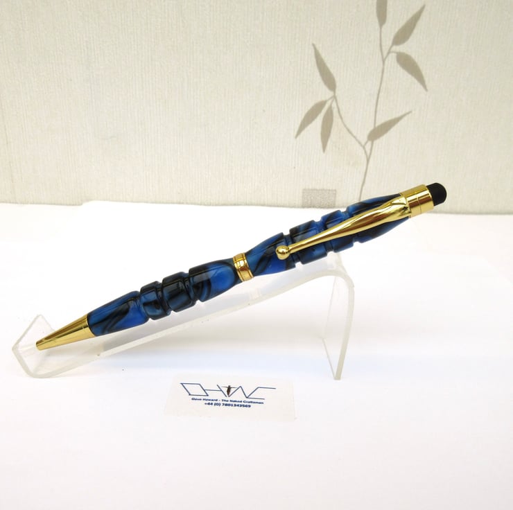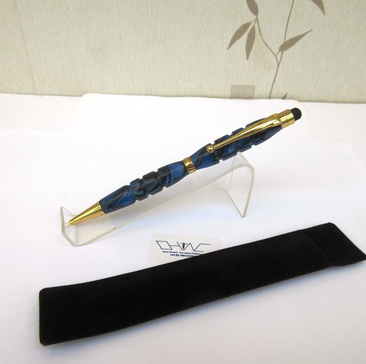 For sale here is a beautiful hand crafted Ballpoint Roller Ball Stylus Pen personally turned by myself from a rich, shimmering, blue and black colour acrylic.