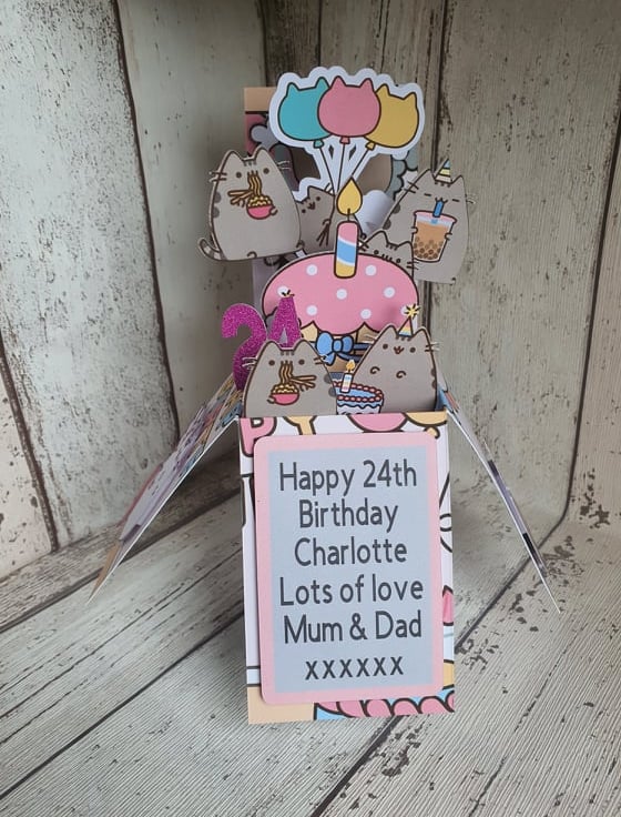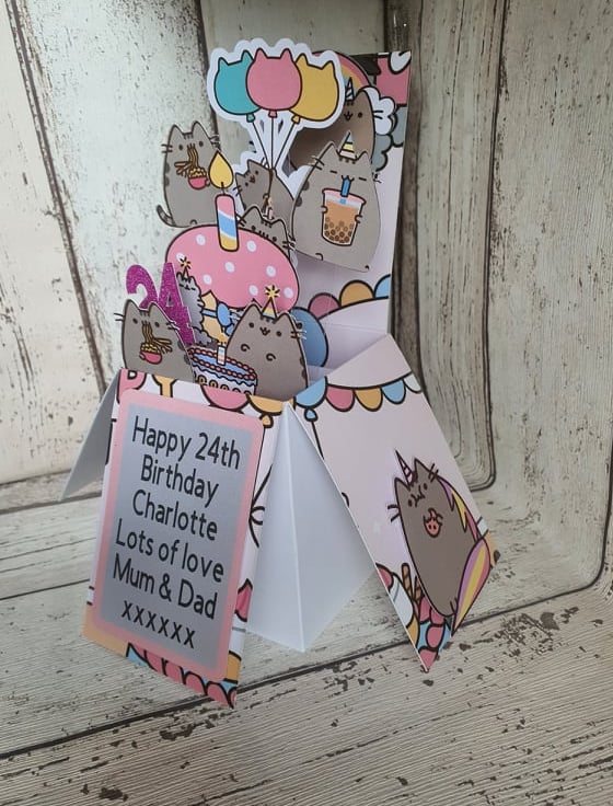 Wish your pusheen mad fan a Happy Birthday with this gorgeous handmade pop-up box card!