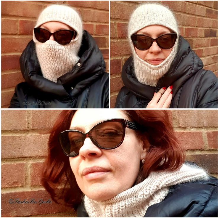 Luxurious knitted balaclava, Knit face cover, Ski mask, Winter knitted helmet