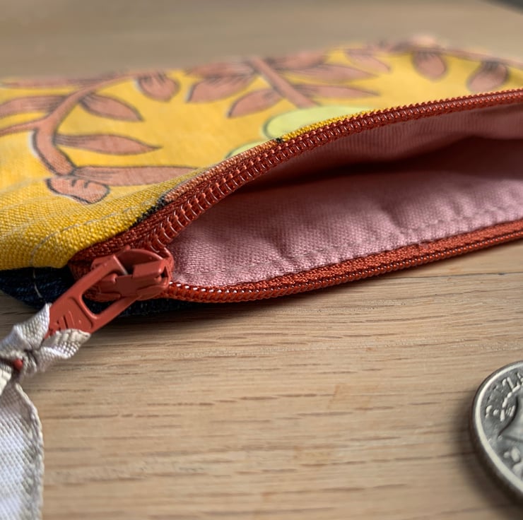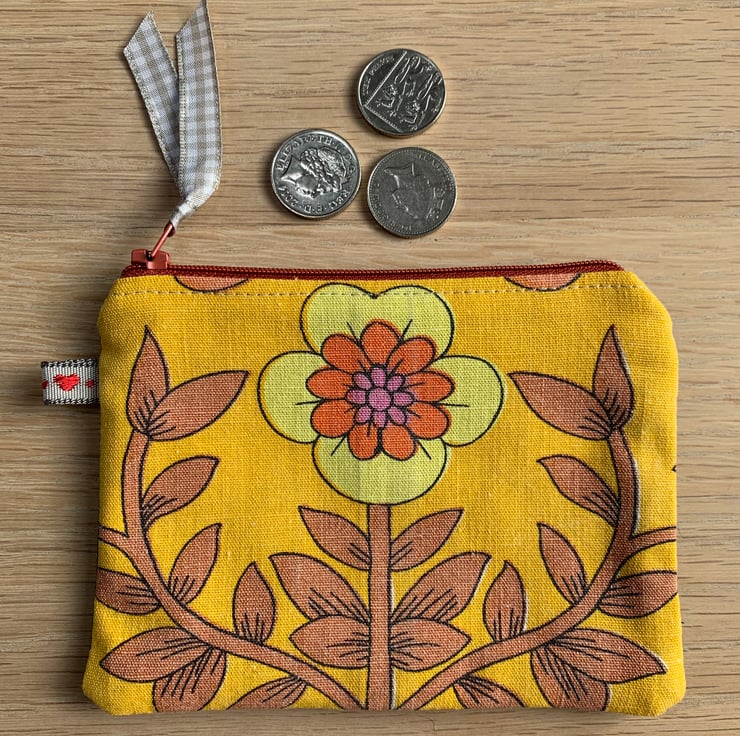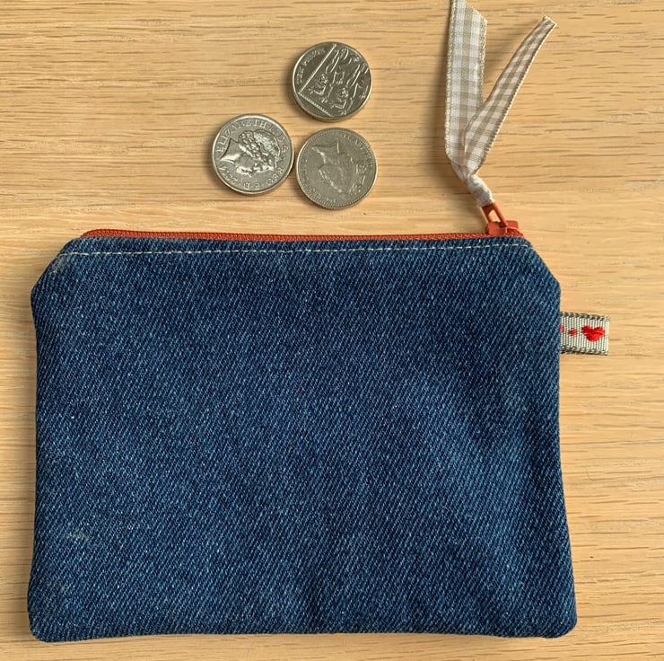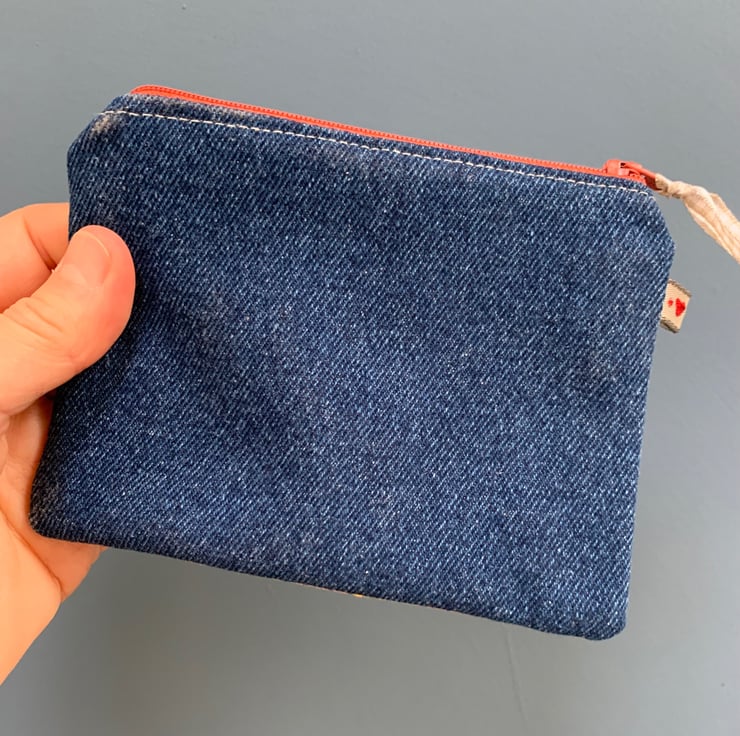 Cute little coin purse made from vintage Roundelay cotton backed with reclaimed denim. It is lined with pink cotton.