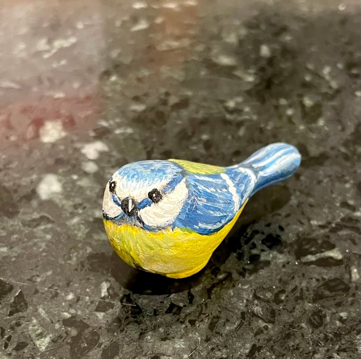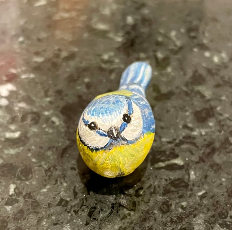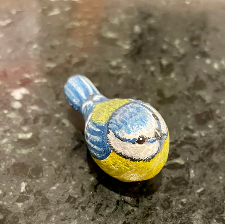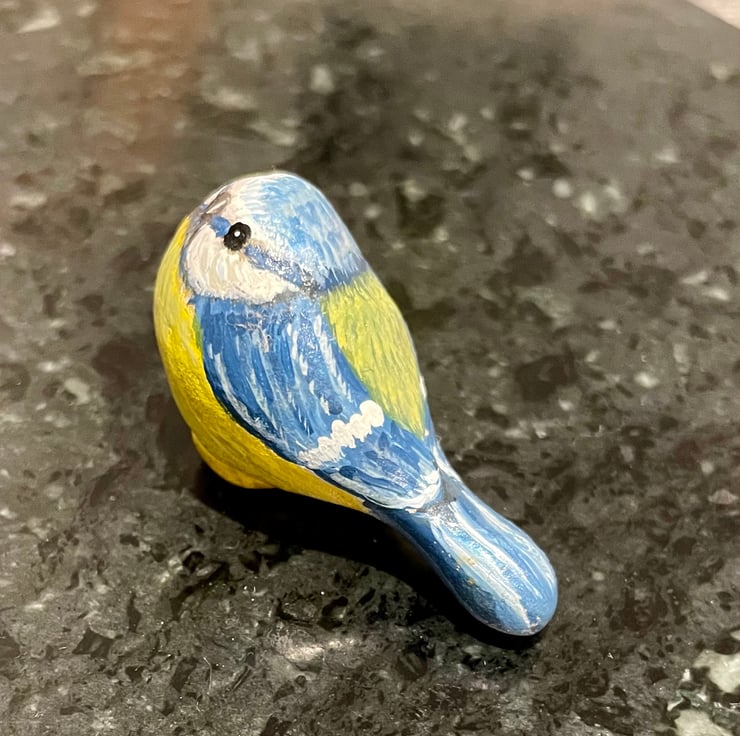 This stone has been painted using acrylic paint and glazed for a glossy protective finish