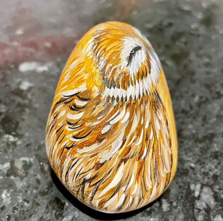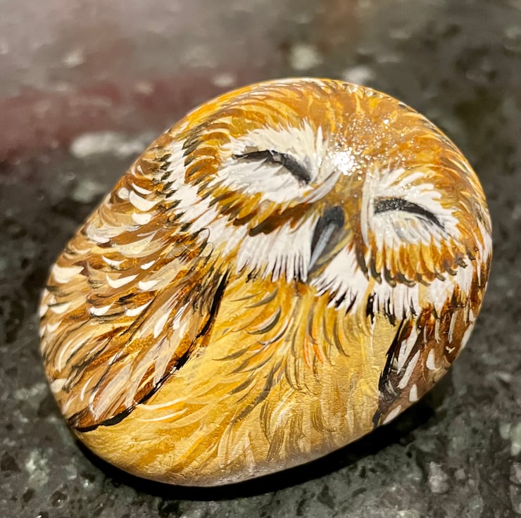 Sleeping owl hand painted pebble garden rock art wildlife bird painting