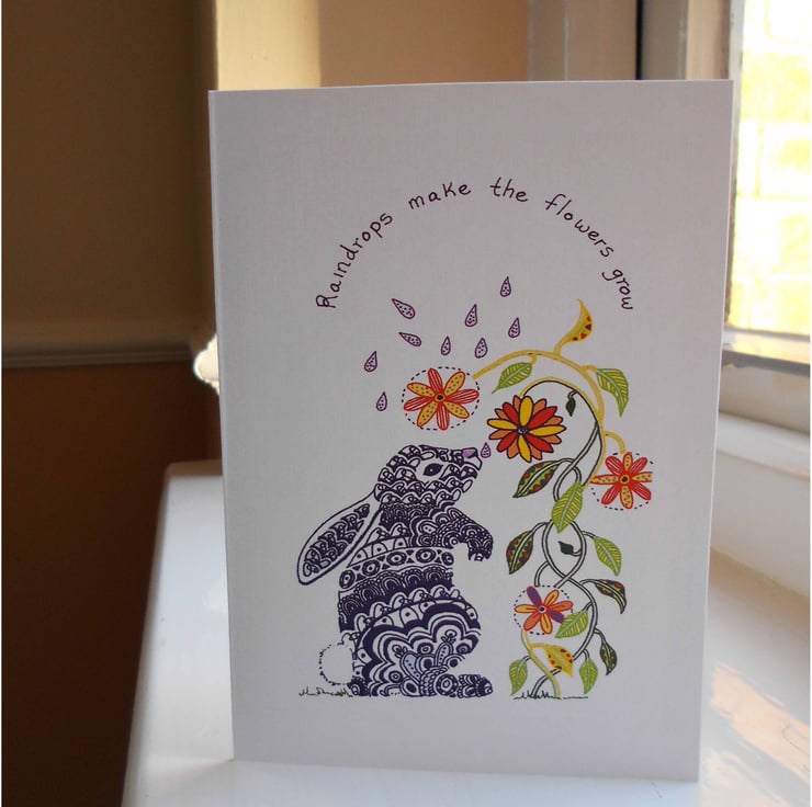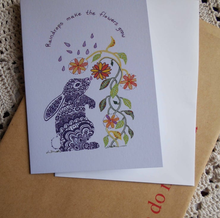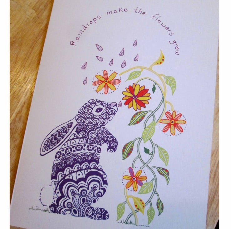 Pack of 4 handdrawn Bunny and Flowers thank you cards (250gsm). The design is taken from my original pen and ink artwork.