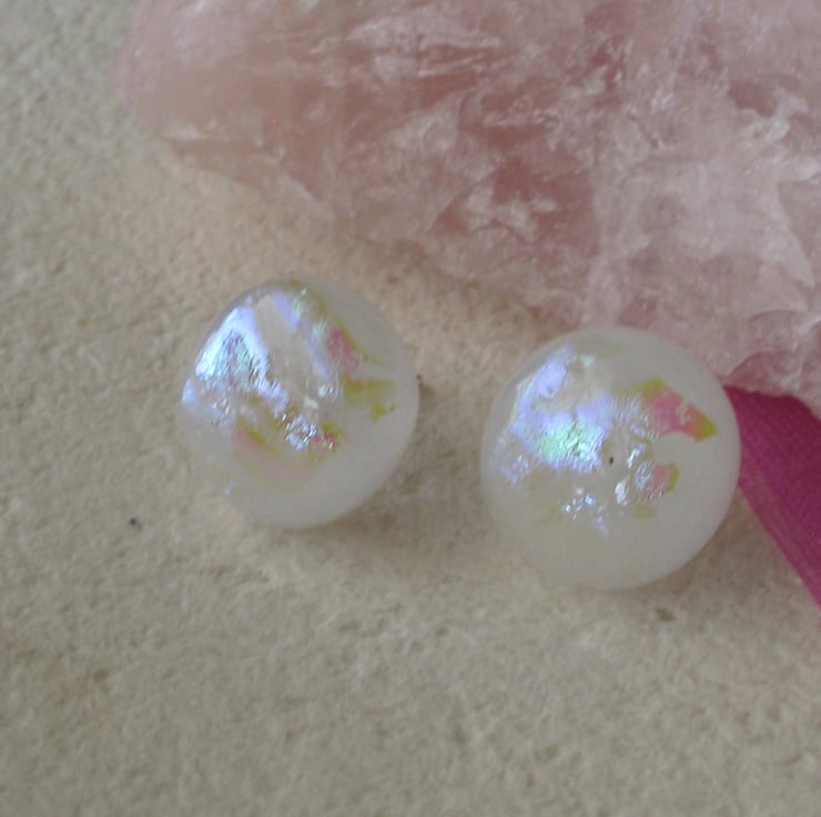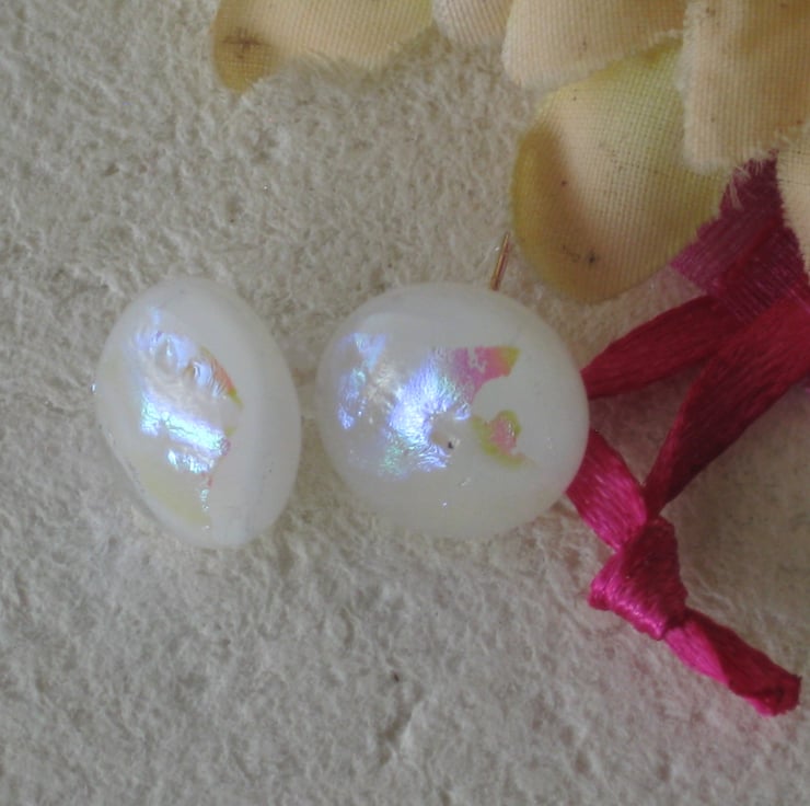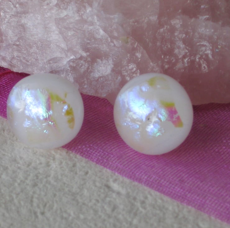 These glass stud earrings have a pearlised look to them. Very beautiful. Great for a wedding maybe or even day to day wear.