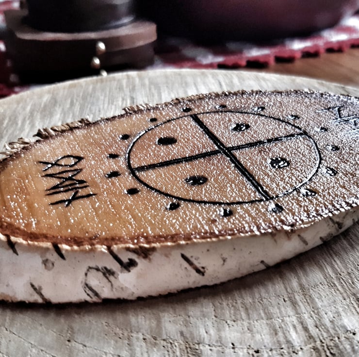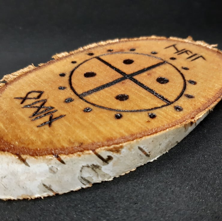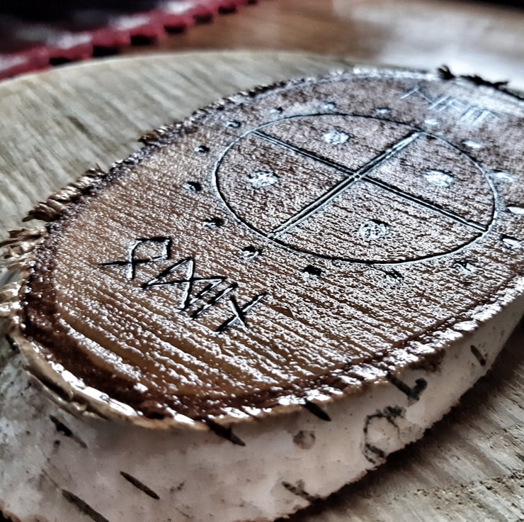 Viking Rune Inscription "Hail Odin" Altar Silver Birch Wood Sign With Bark