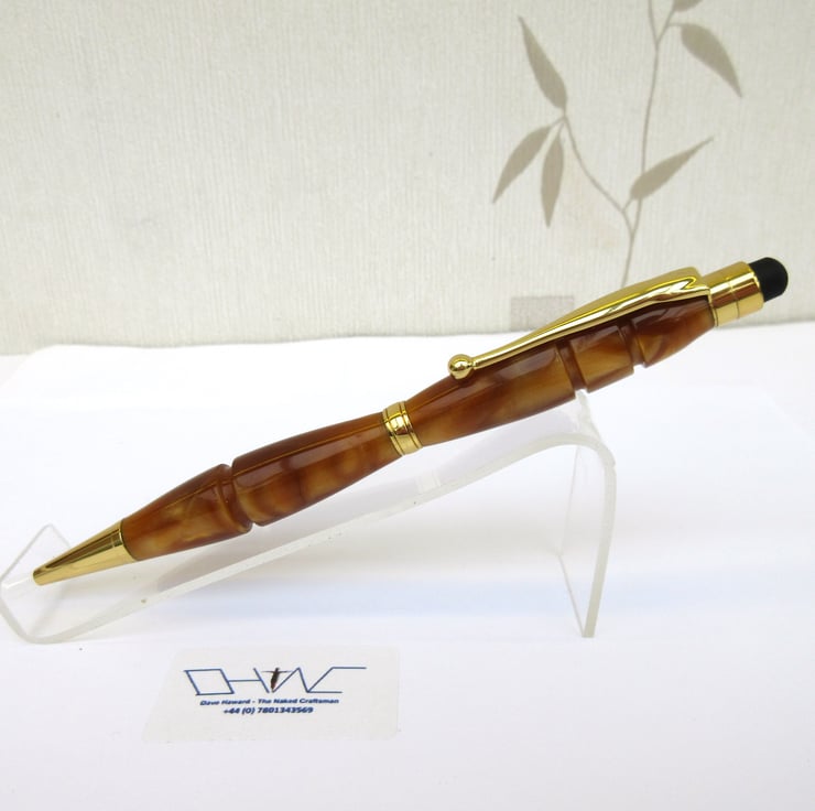For sale here is a beautiful hand crafted Ballpoint Roller Ball Stylus Pen personally turned by myself from a rich, shimmering bronze colour acrylic.