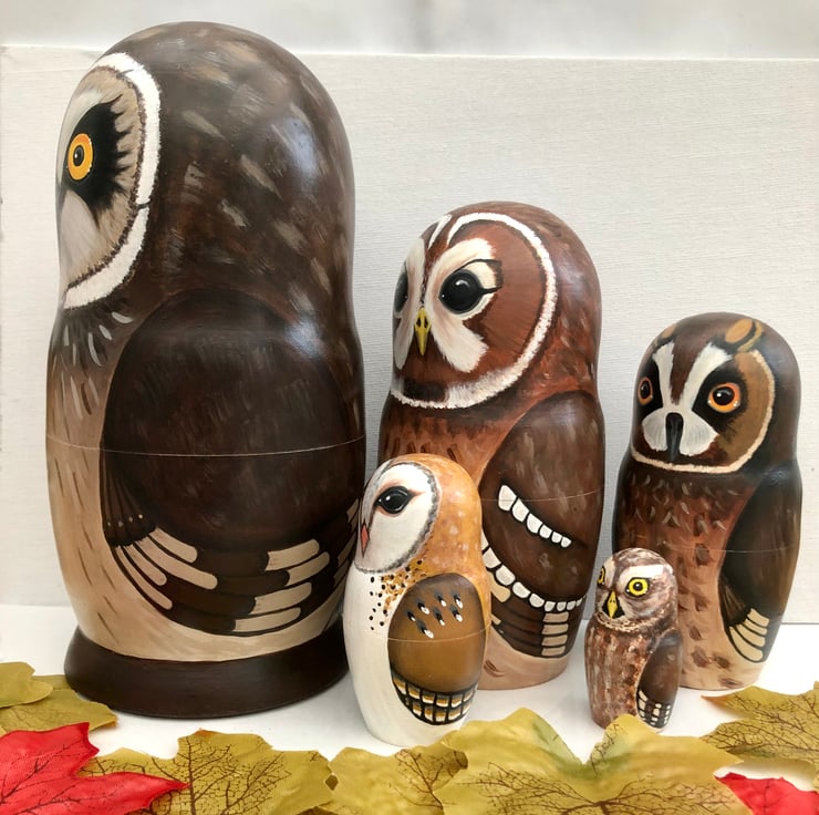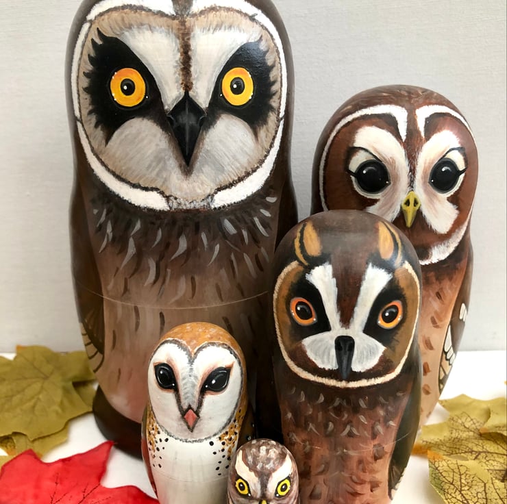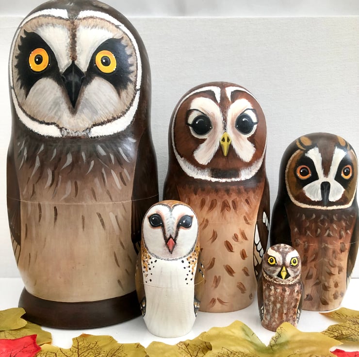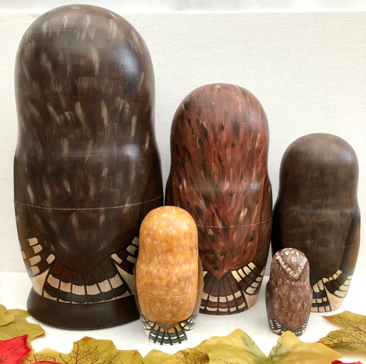 Each owl fits inside each other like Russian dolls.