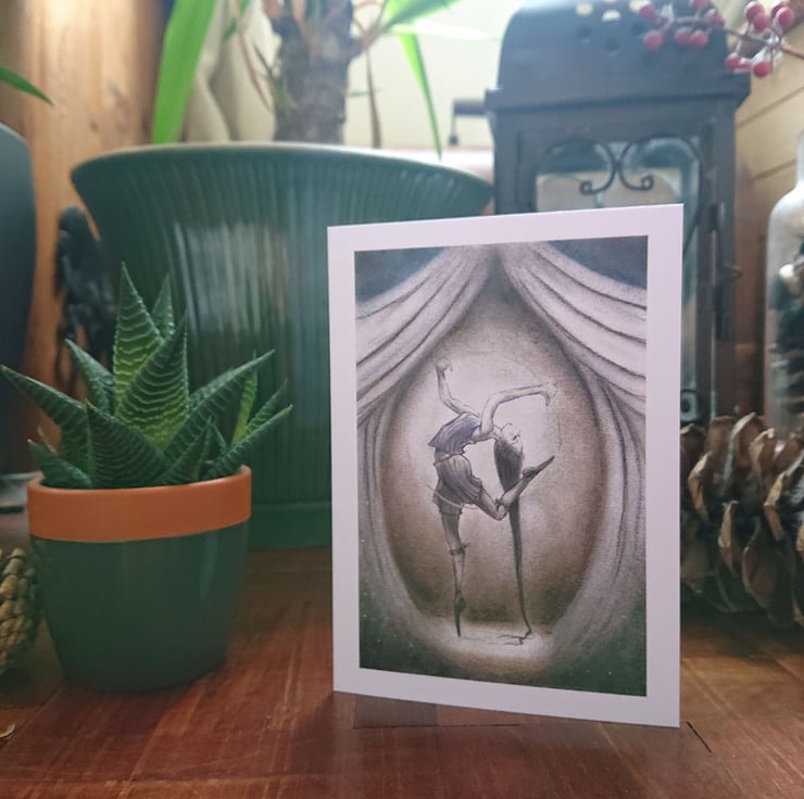 The Contortionist -(greeting card with brown envelope). Inspired by Tsukiko from The Night Circus and drawn using a graphite under drawing with pastels and pastel pencils..