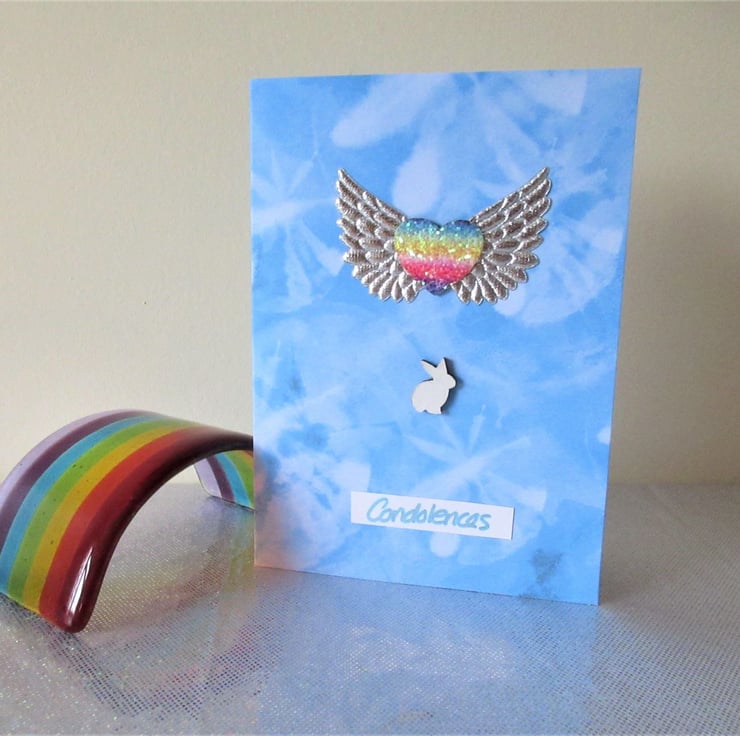The text on the front reads 'Condolences' - please note, this is handwritten, in metallic pen, rather than printed.